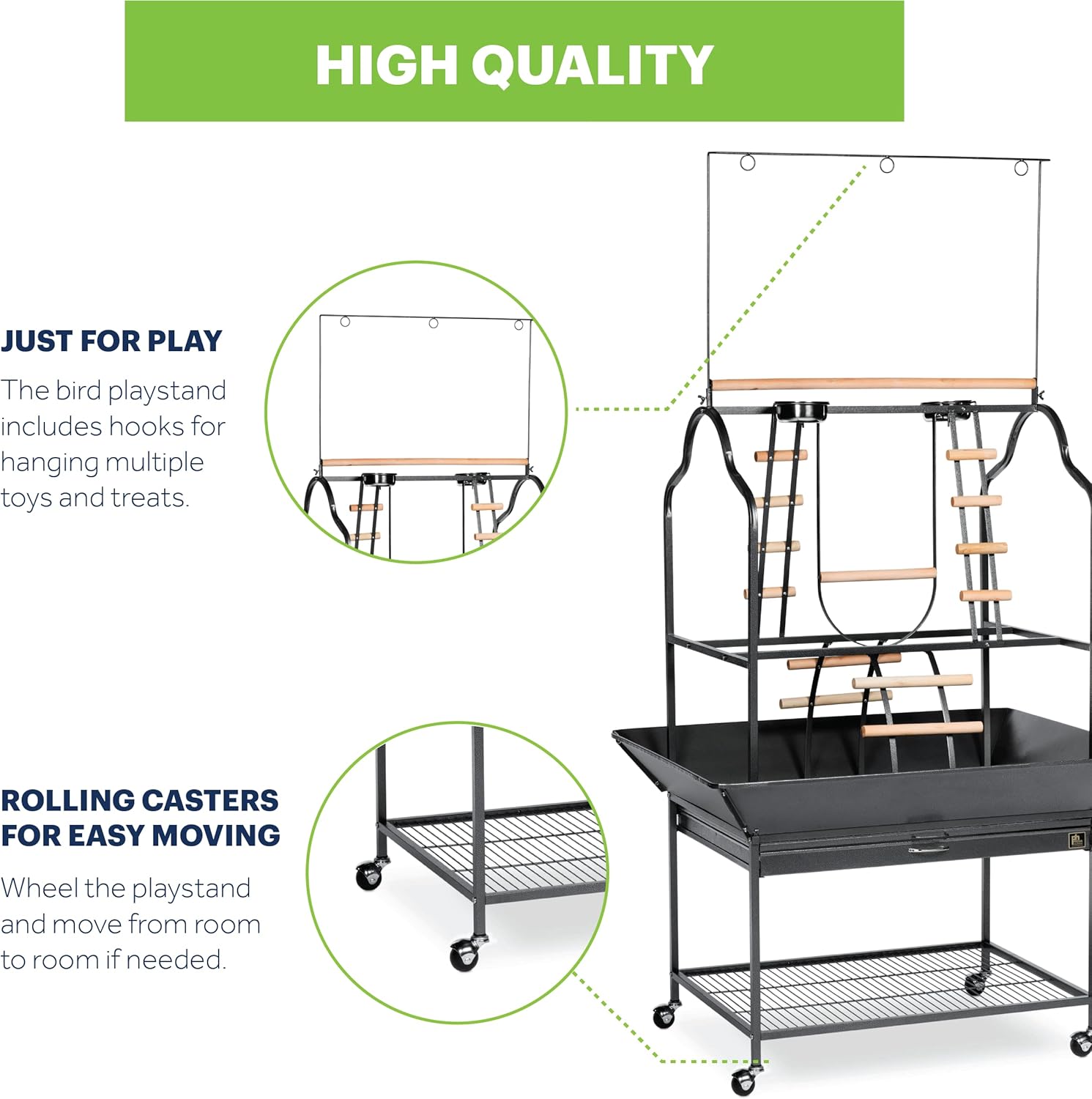 Prevue Pet Products Large Parrot Playstand with Wheels, Bird Stand Activity Play Center with Perches and Ladders, Indoor Outdoor Playground for Birds, Black Hammertone Finish