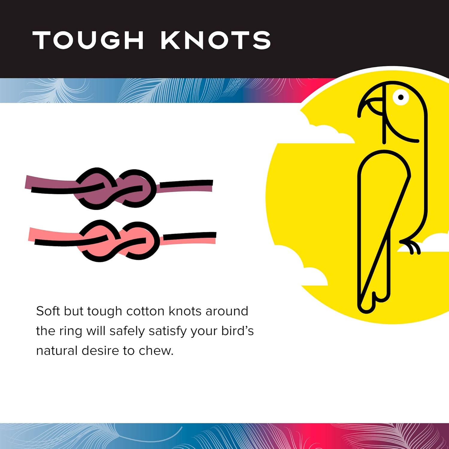 - TOUGH KNOTS: Soft but tough cotton knots around the ring will safely satisfy your bird’s natural desire to chew