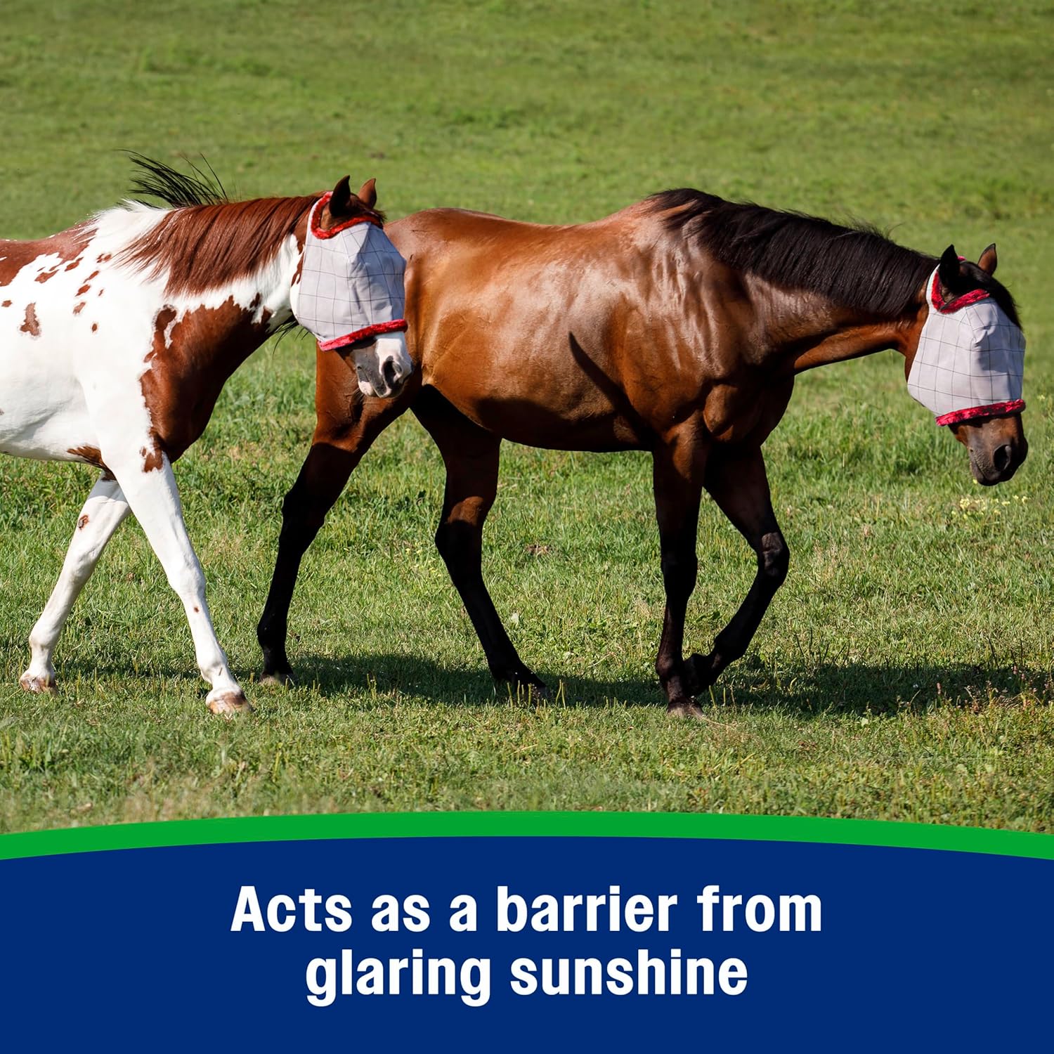 - INNOVATIVE DESIGN extends over horseās face to provide extended coverage against insects and glaring sunlight.