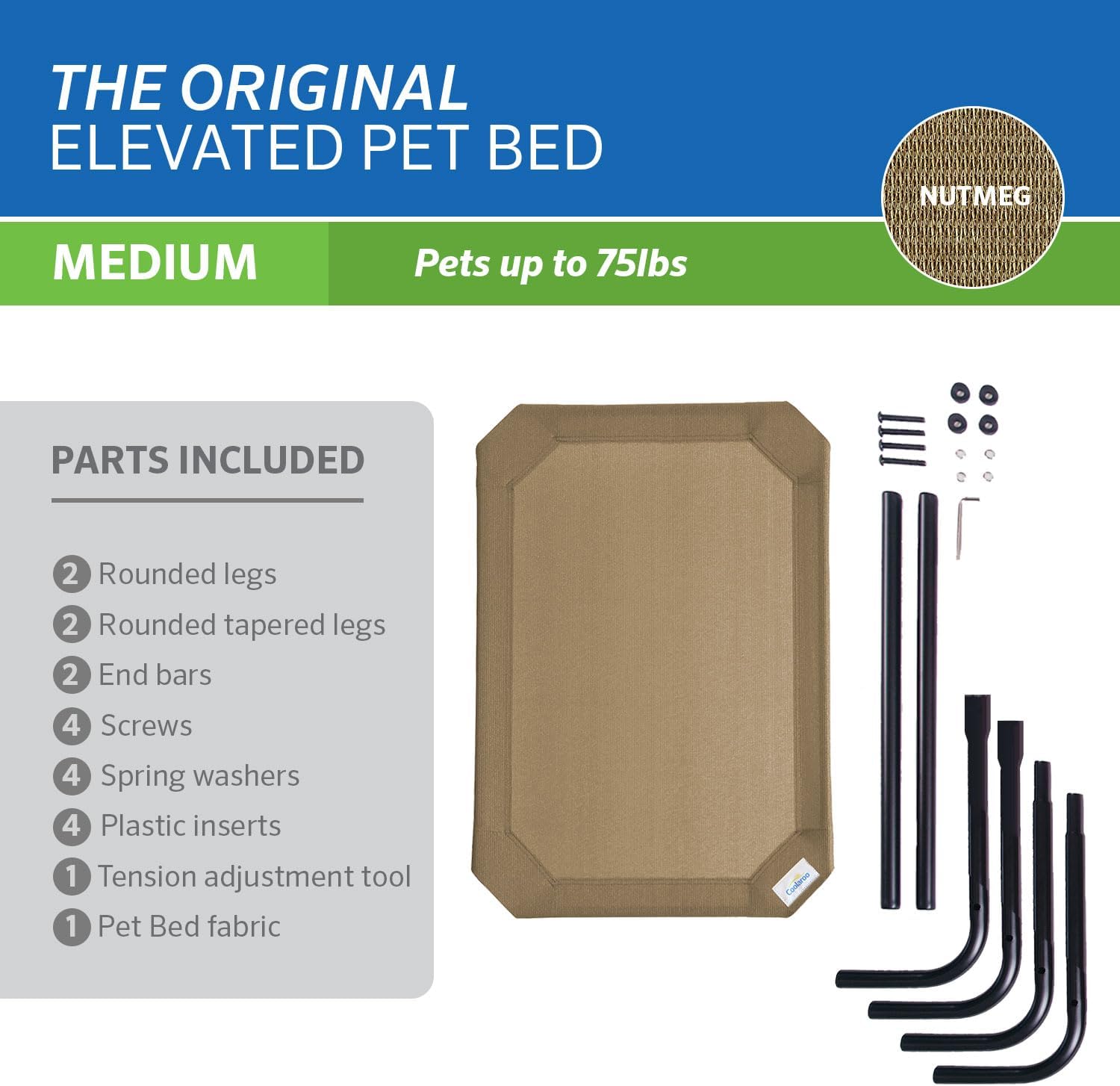 Coolaroo Original Elevated Dog Bed - Breathable Off-The-Ground Pet Bed with Cooling Fabric, Joint Relief & Moisture-Resistant Fabric, 100% Recyclable, Easy Clean, Nutmeg, Medium