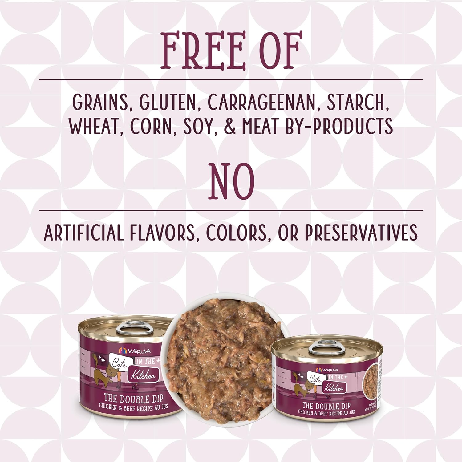 - The Double Dip (3.2oz cans, pack of 24) Featuring cage-free shredded chicken and grass fed beef in a delicious Au Jus. An all natural blend of premium proteins that cat’s can't resist!