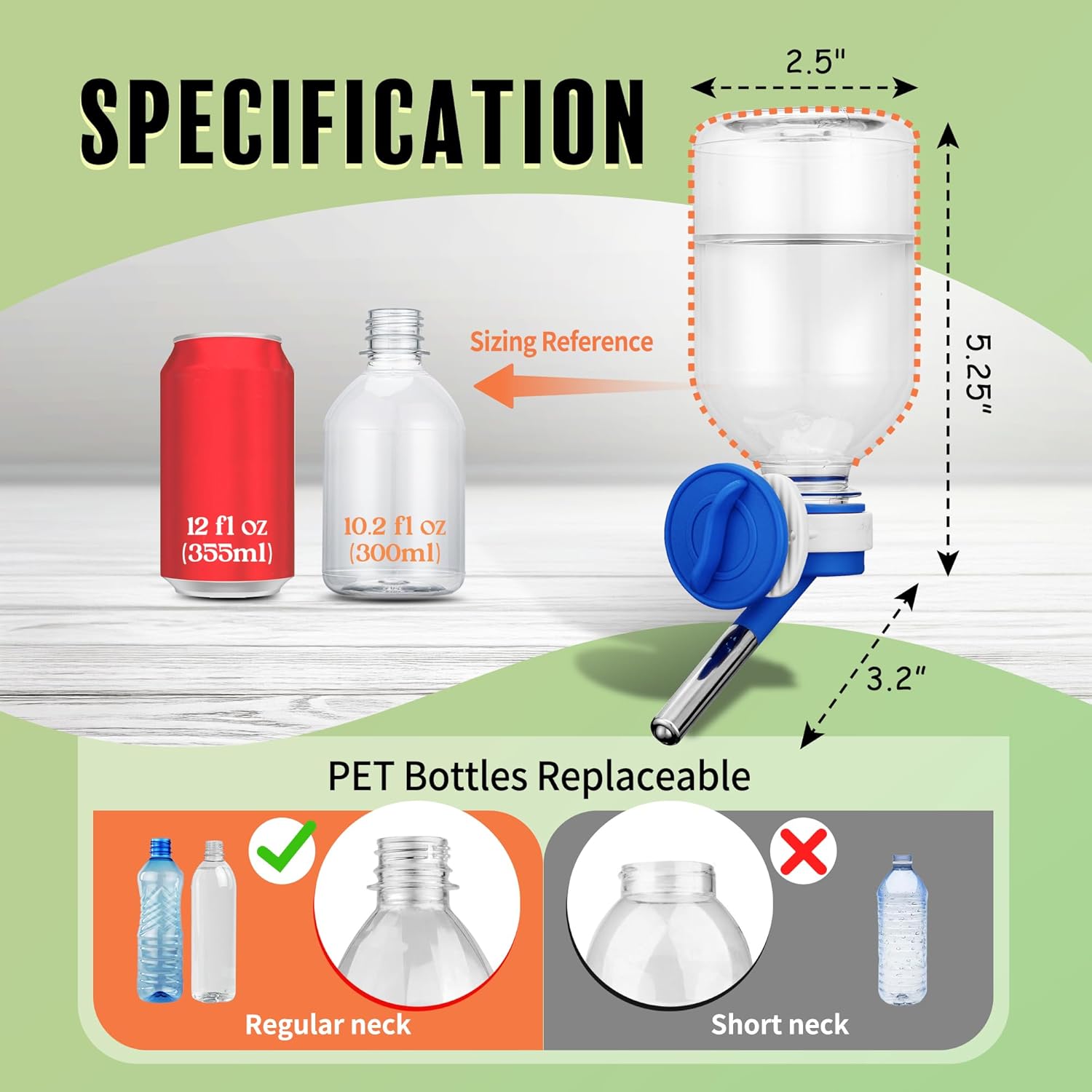 - ๐พ Mini-Sized Nozzle (10mm) is recommended for Guinea Pig, Ferret, Hamster, Bunny. / Made of BPA Free Material/ 10.2 oz Capacity.