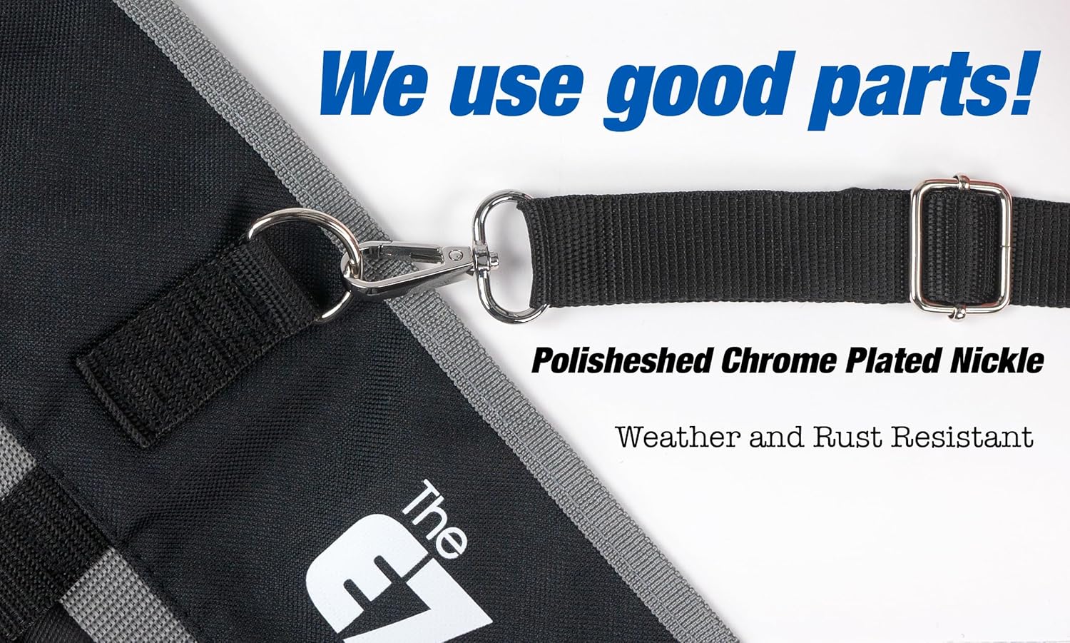 - INCLUDES - This portable, space saving bag has adjustable straps with nickel plated bolt snap and rings. It will keep fan securely in place. *Fan not included