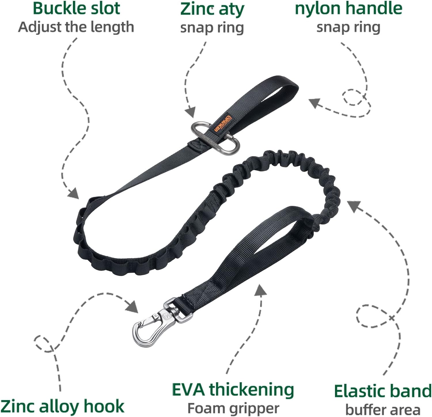 EXCELLENT ELITE SPANKER Tactical Bungee Dog Leash Military Adjustable Dog Leash Quick Release Elastic Leads Rope with 2 Control Handle(Black