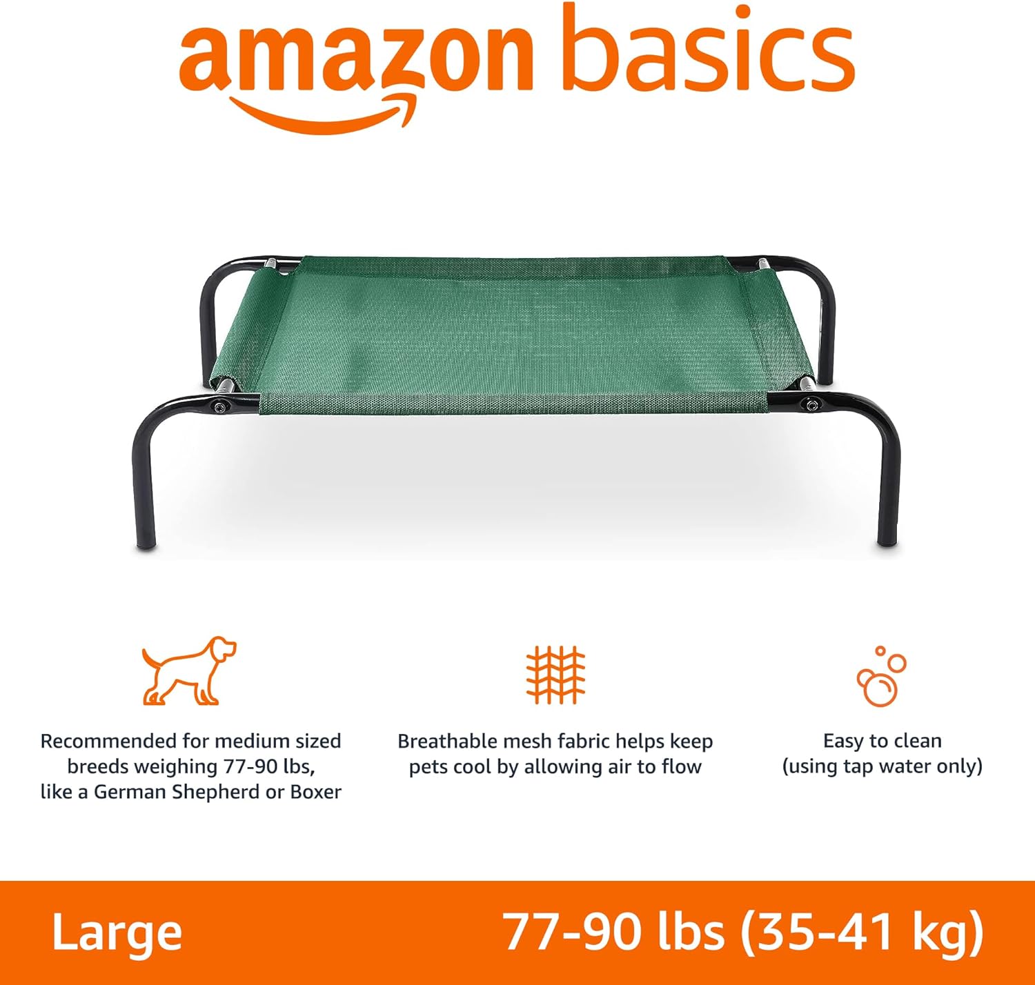 - Large elevated cooling pet bed in Green designed for medium and large dog breeds, like a Poodle, Husky, German Shepherd, or Boxer