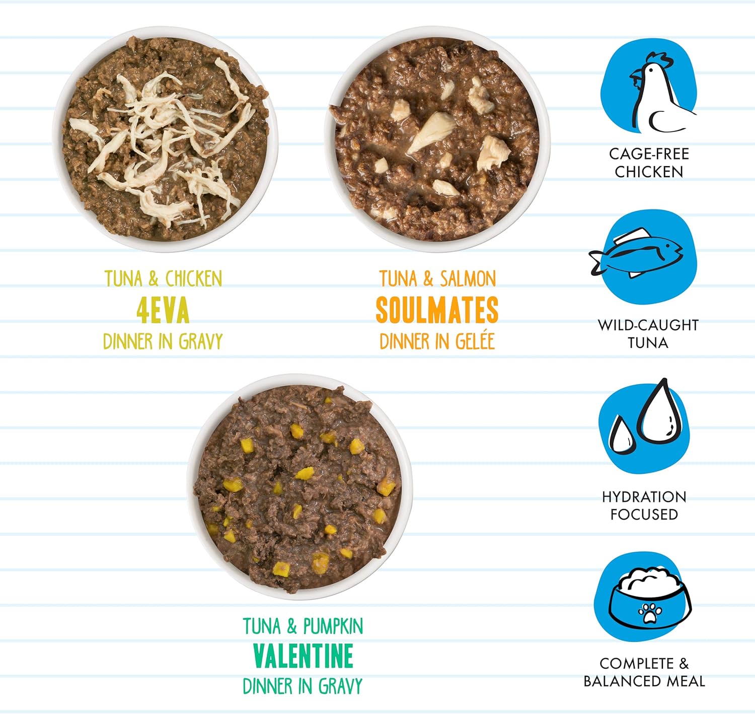 - Hydration Focused Recipes. Moisture rich goodness to fuel your cat’s playful purrs and pounces