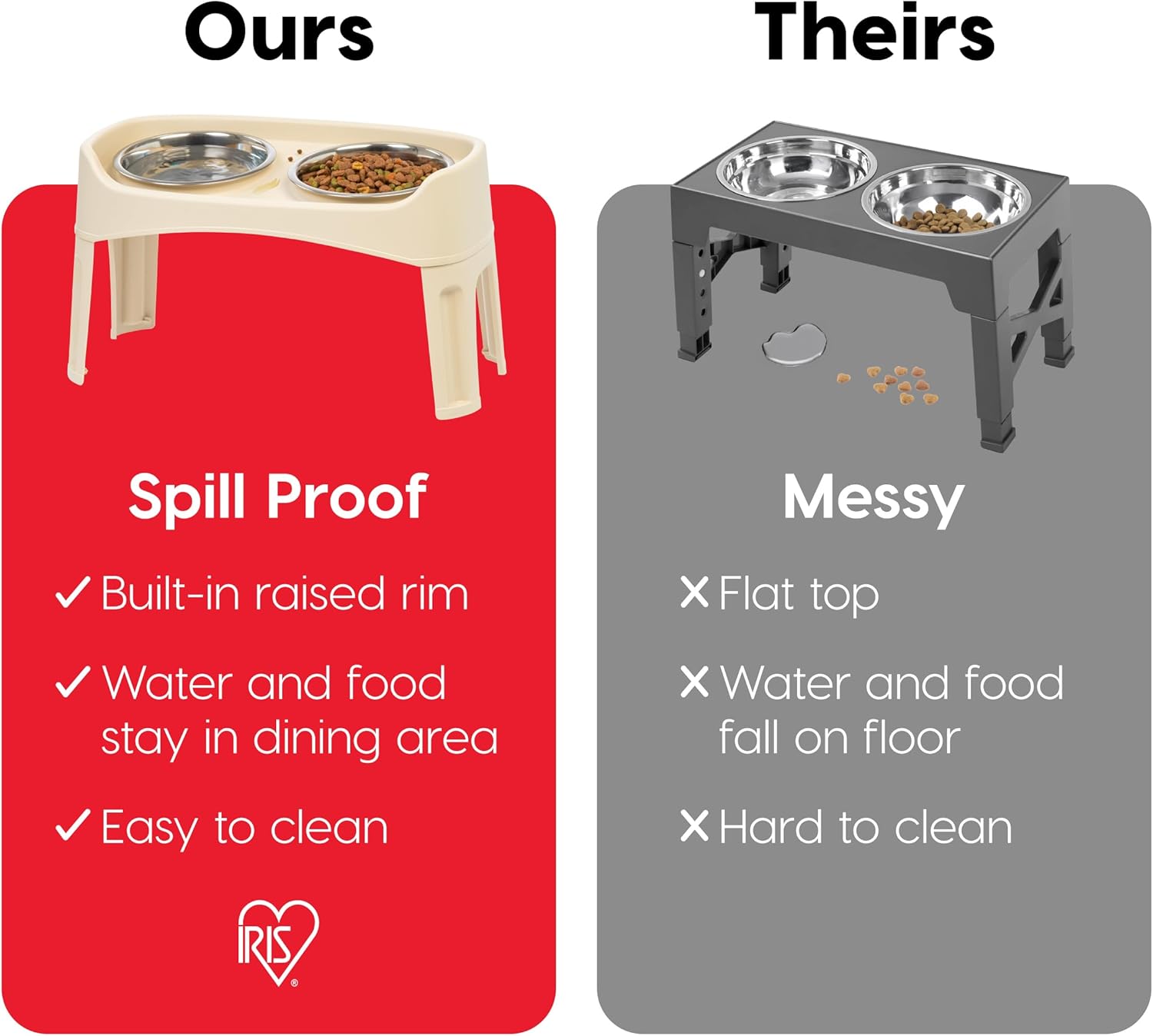 IRIS USA Elevated Dog Bowls, Adjustable Height, 2 Thick 64 oz Stainless Steel Bowls, Spill-Proof with Raised Outer Rim, Durable Made in USA Plastic, Easy Assemble, 2 Heights 4.63" or 12.25" Almond