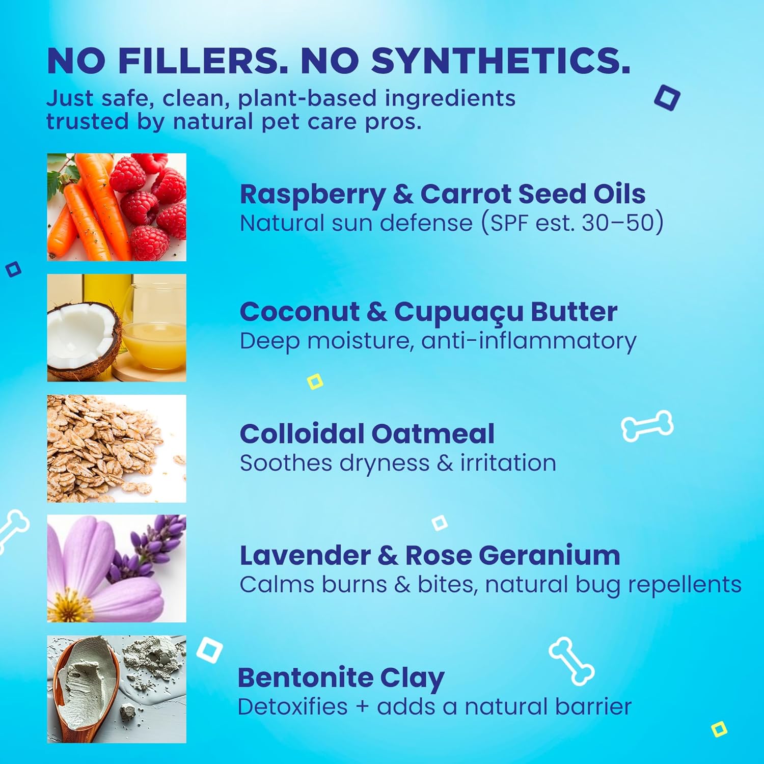 - Sun Protection For Dogs -- Use this year-round to provide dog sunscreen protection. A must-have for your dog camping gear and hunting dog accessories. This balm doubles as a dog moisturizer for dry skin, a dog skin soother, and a dog paw balm.