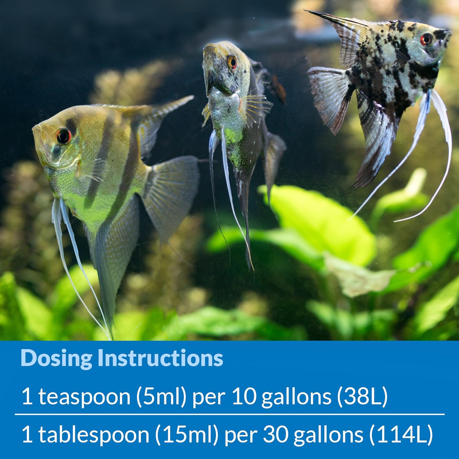 - Use when adding or changing water, when adding new fish, and when fish are damaged by injury or disease