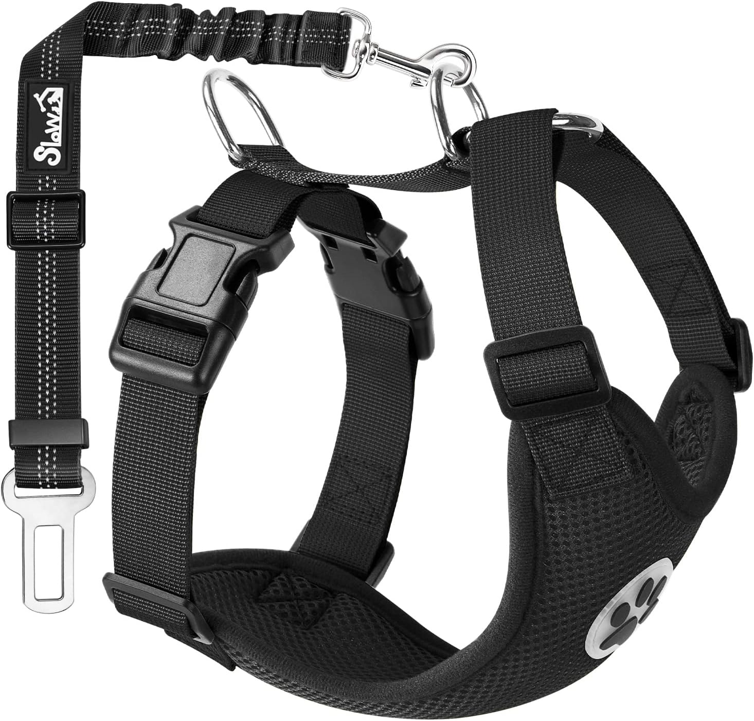 - 【Breathable & Comfortable】--- Designed with double-layer breathable mesh fabric and a padded edge, dog seat belt harness for car offers extreme comfort for your beloved pet. The wide fabric area in the chest helps relieve pressure and prevents choking.