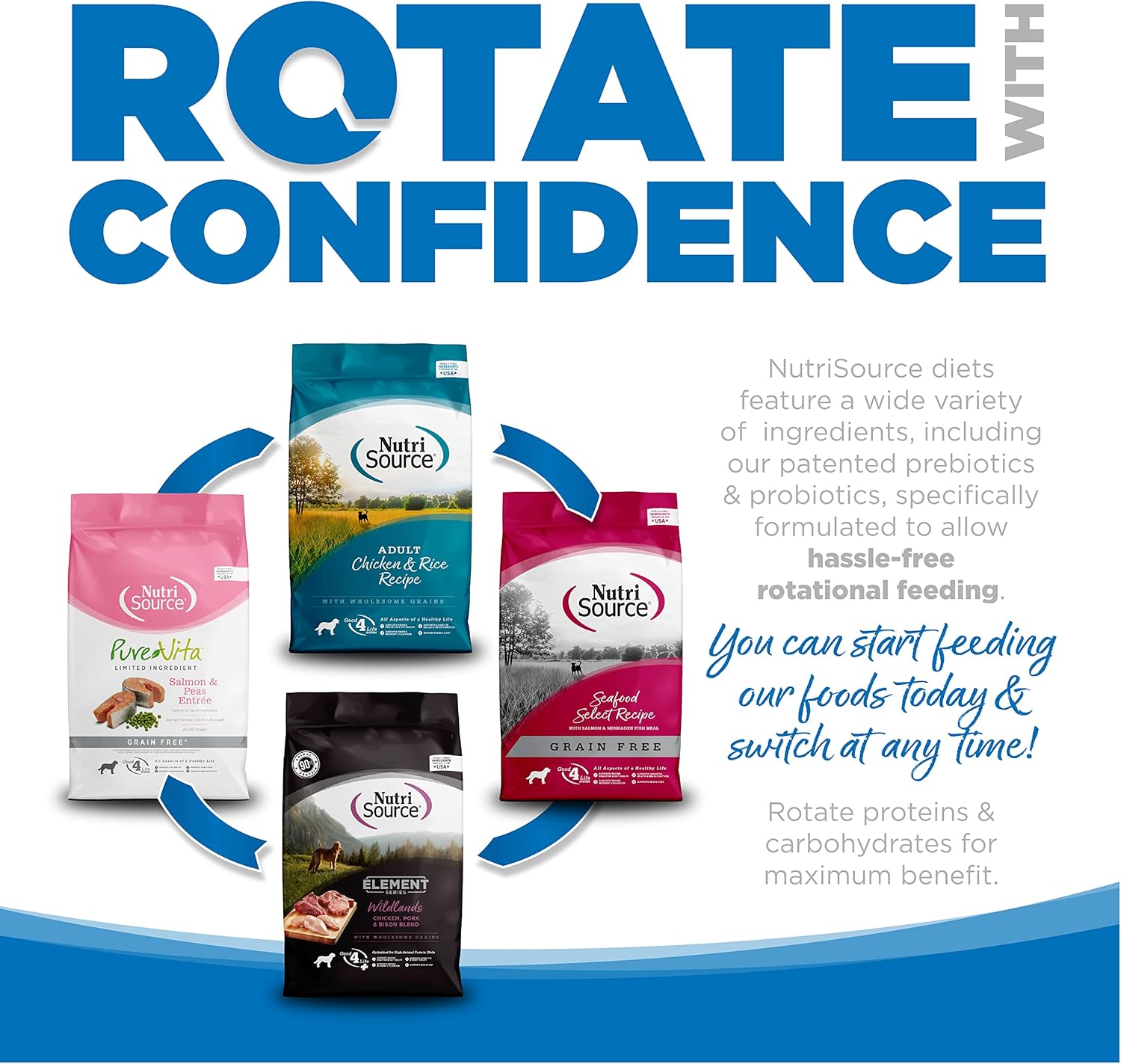 - Contains One 30LB Bag of NutriSource Adult Dog Food, Made with Chicken and Rice, Large Breed, with Wholesome Grains