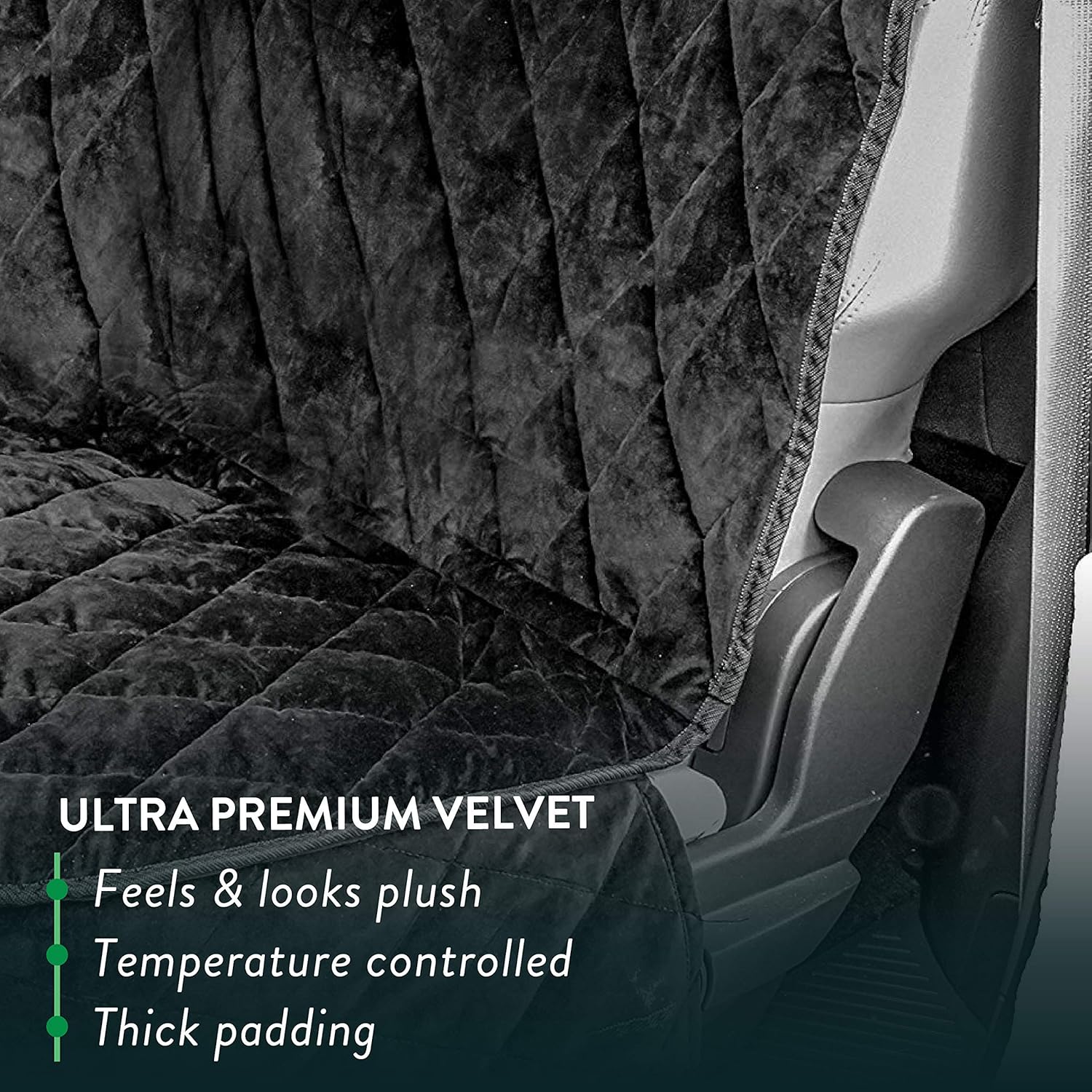 Plush Paws Products Velvet Rear Car Seat Protector w/o Hammock | Washable & Waterproof Back Seat Dog Cover for Car, Truck, & SUV | Nonslip, Tear Resistant Pet Seat Cover | Regular Charcoal