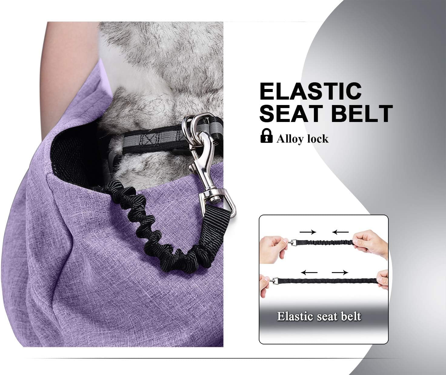 - Double protection device for safety buckle and safety mesh. Apply the harness or collar to the pet to prevent from jumping out suddenly. The safety buckle is connected with the spring rope, which plays a role of buffer and protection when the pet accidentally jumps out of the pet bag and reduces the shock to the pet . The opening of the net is adjustable , and the adjusting buckle is placed on the back of the pet , which is convenient for adjusting and is not easy to hurt the pet .