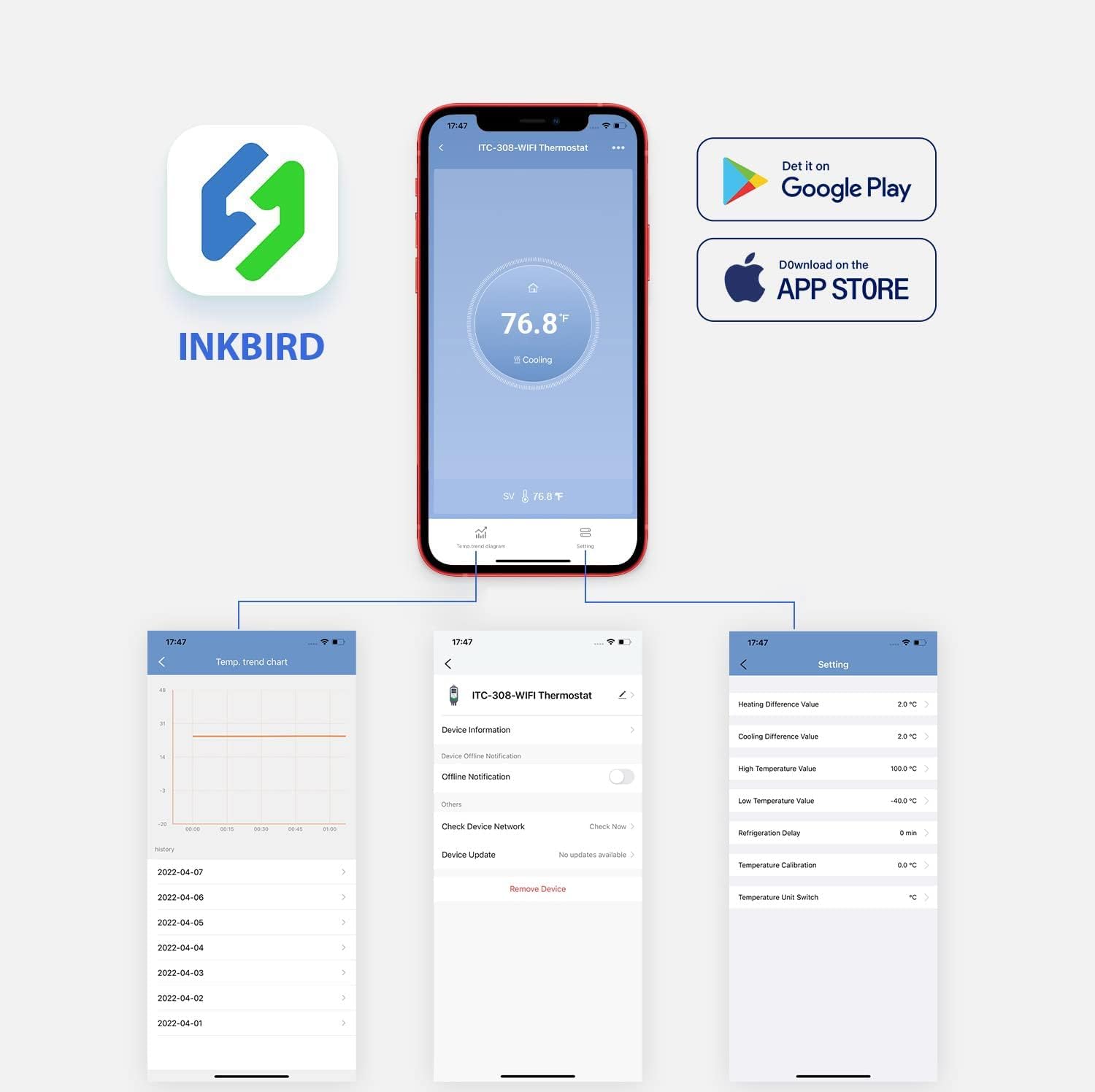 - WIFI smart controller: Supports both IOS and Android; WIFI connection supports 2.4 GHz Wi-Fi with INKBIRD APP to control the temperature remotely