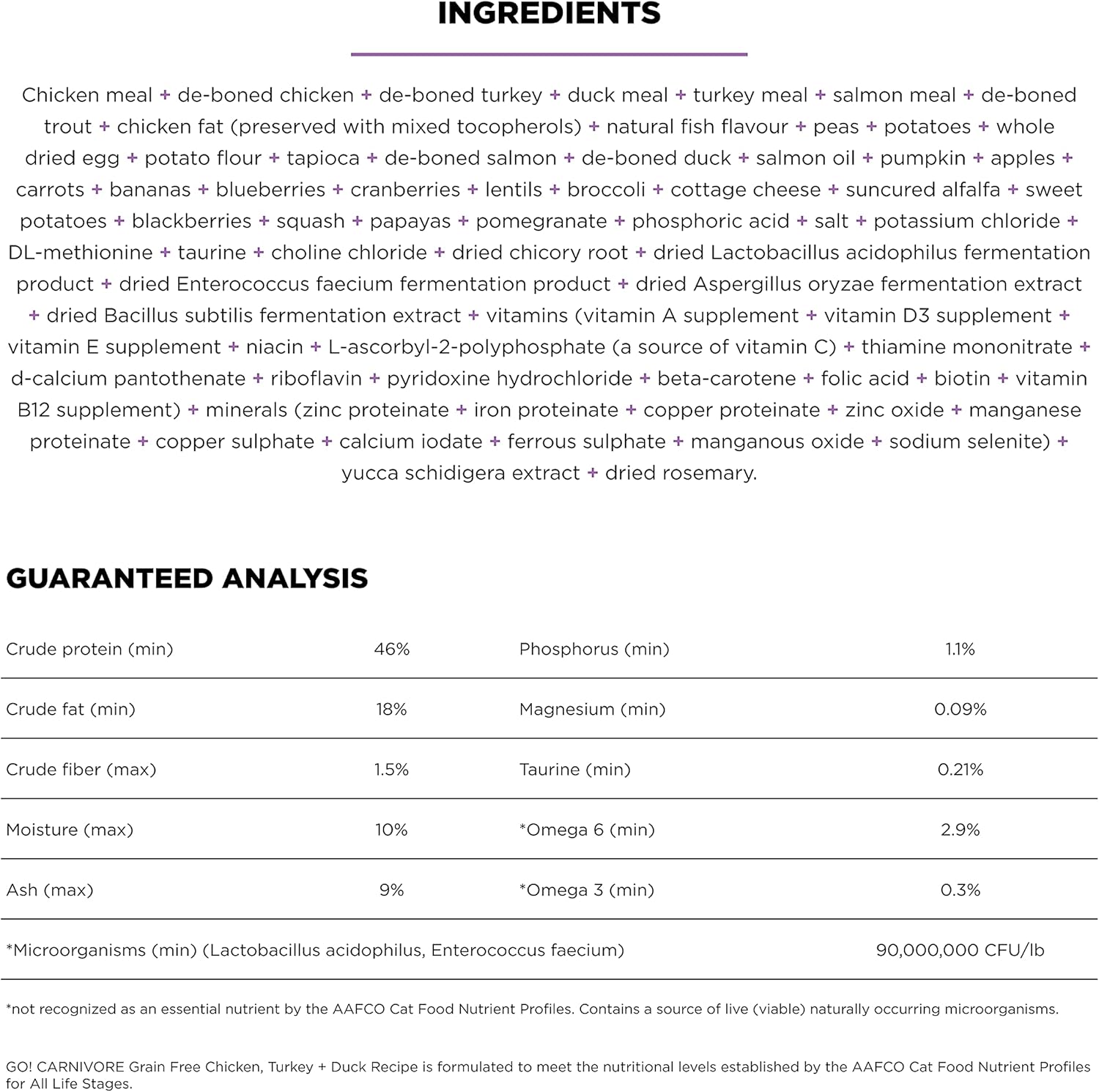Go! Solutions Carnivore, Grain-Free, Protein Rich Dry Cat Food, Chicken, Turkey and Duck Recipe, 16 lb Bag