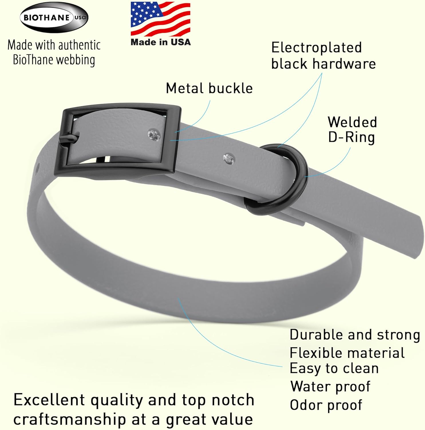 Dogline Biothane Waterproof Dog Collar Strong Coated Nylon Webbing with Black Hardware Odor- Proof for Easy Care Easy to Clean High Performance Fits Small Medium or Large Dogs, Battleship Gray