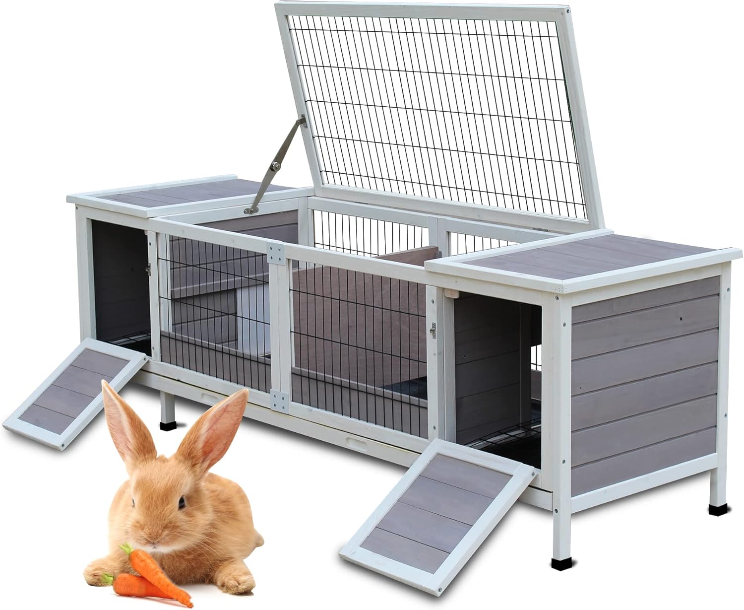 Rabbit Hutch Indoor Leakproof Bunny Cage Fir WoodenOutdoor Bunny House with Wire Floor Leakproof Plastic Tray (Grey)