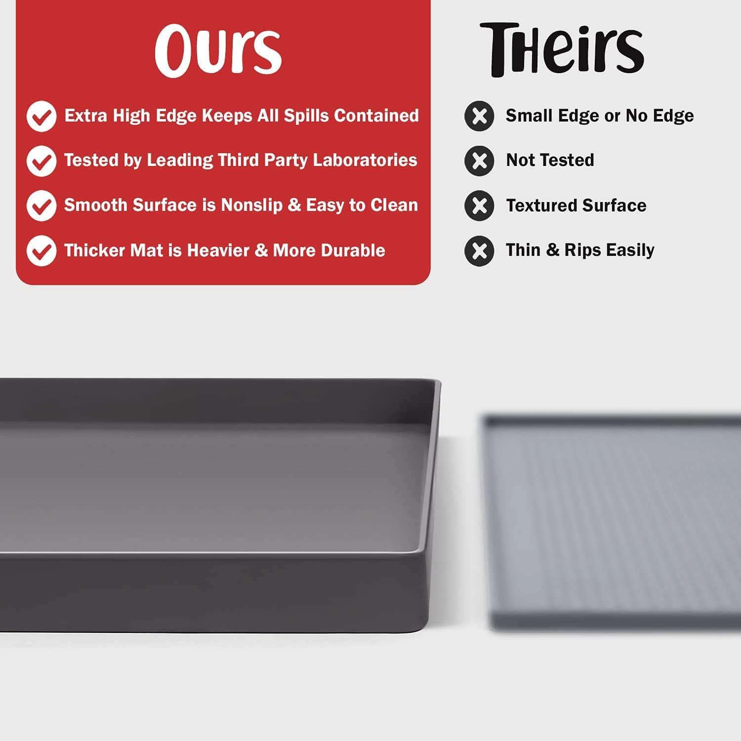 - Less Mess & Less Stress: Super high edge (0.6”) of DogBuddy Dog Food Mat keeps the spilled food and water on the mat and away from your beautiful floor. Silicone is naturally 100% waterproof, so what happens on the mat stays on the mat.