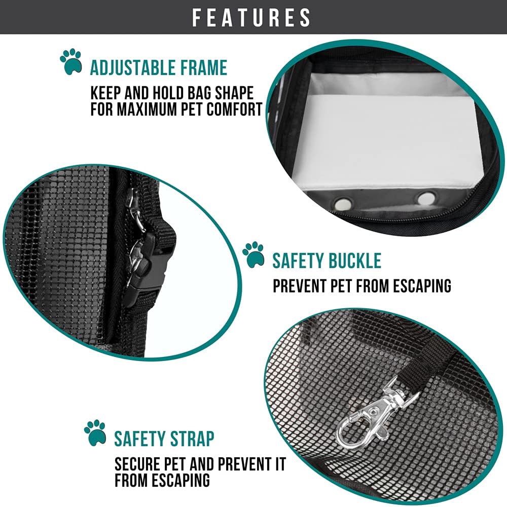 - AIRLINE APPROVED PURSE PET CARRIER: Airline compliant and fits under most airplane seats, this tsa approved pet carrier is easy to carry on for any travel and outdoor activity. The handle strap is sturdy and durable, allowing you to carry this dog tote bag by hand or on your shoulder. The pet carrier also comes with a front large pocket and a mesh pocket on the back to store pet stuff, treats, food, toys, or personal items, phone and cards, making it the most convenient cat carrier for any trip.
