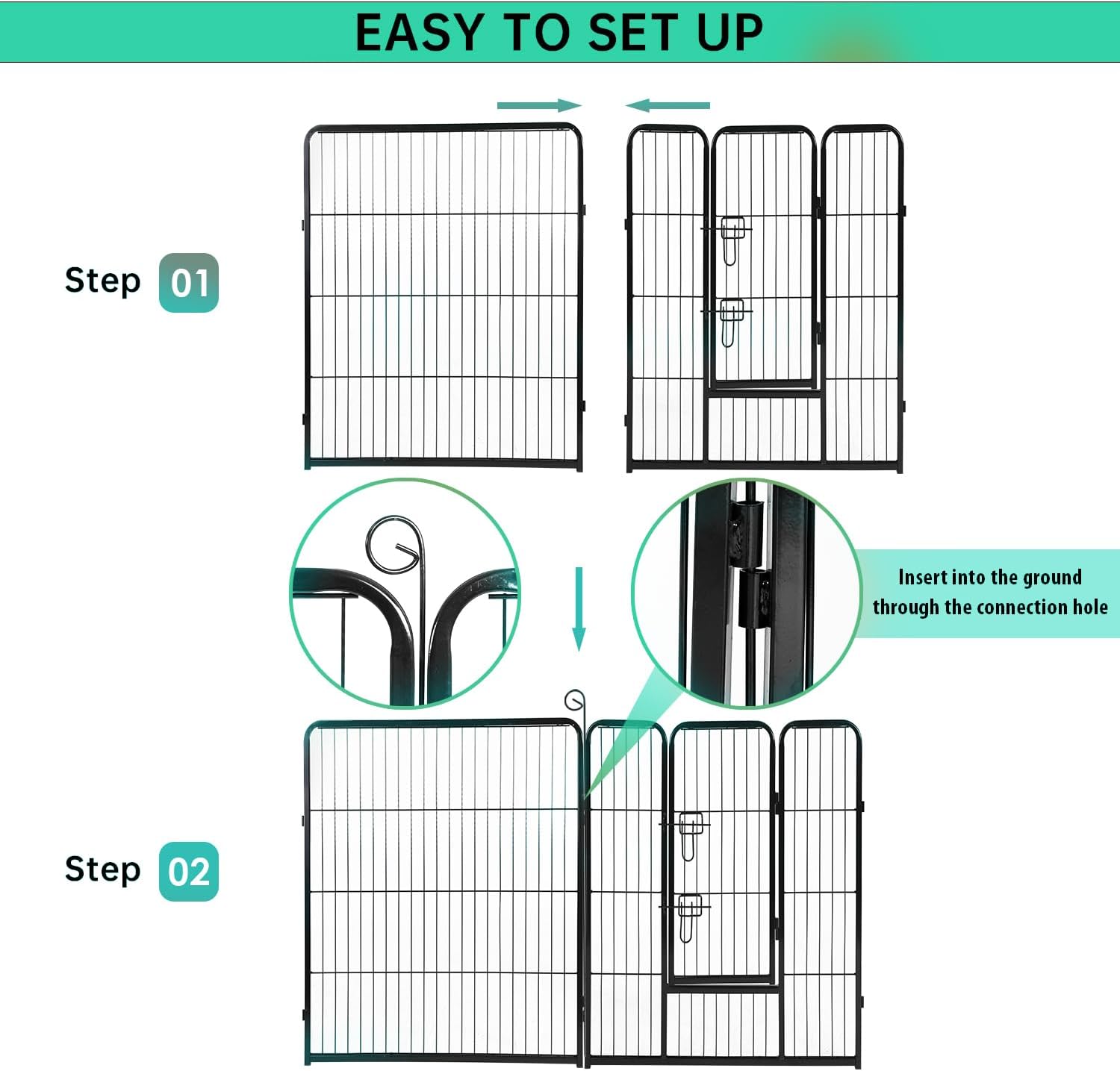 - ✔【A LARGE SECURE AREA】Our puppy playpen is great and keeps your pets safe from others. Provides plenty of room for your pets. The sides of the dog playpen are tall enough for you to reach into the enclosure. Have peace of mind to contain your pet within the enclosure. You can connect additional pet playpens to cover a larger area.