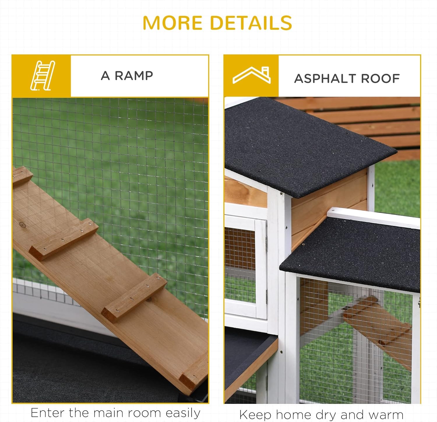 - Spacious Living: With a 4 ft. sq. main house and 7 ft. sq. rabbit run area, your rabbit will have enough room to roam and a private space to rest. Suitable for 1-3 small to medium-sized rabbits. And there is a ramp that connects the two levels.