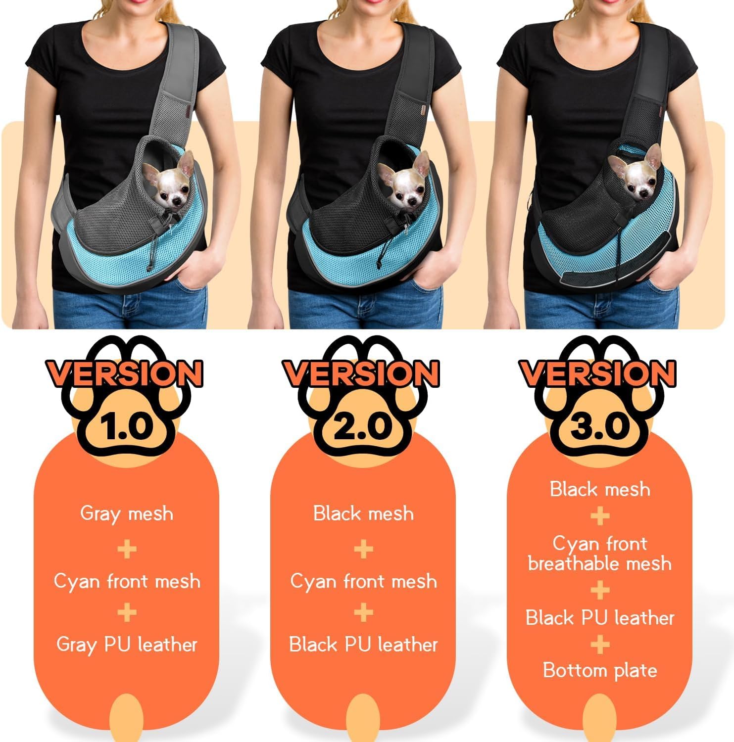 YUDODO Pet Sling Carrier for Small Dogs & Cats – Hands-Free Puppy Carrier with Safety Hook, Large Zipper Pocket, Soft Breathable Mesh, Adjustable Strap & Reflective Strip (Cyan 1.0 S)