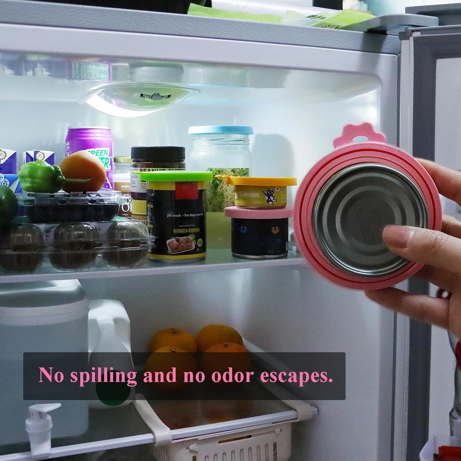 - UNIVERSAL SIZE-- Multicolor pet food can covers have three different size rings for fit most standard size canned dog cat food, such as 3 oz, 5.5 oz, 12.5 oz, 13 oz and 13.2 oz cans.