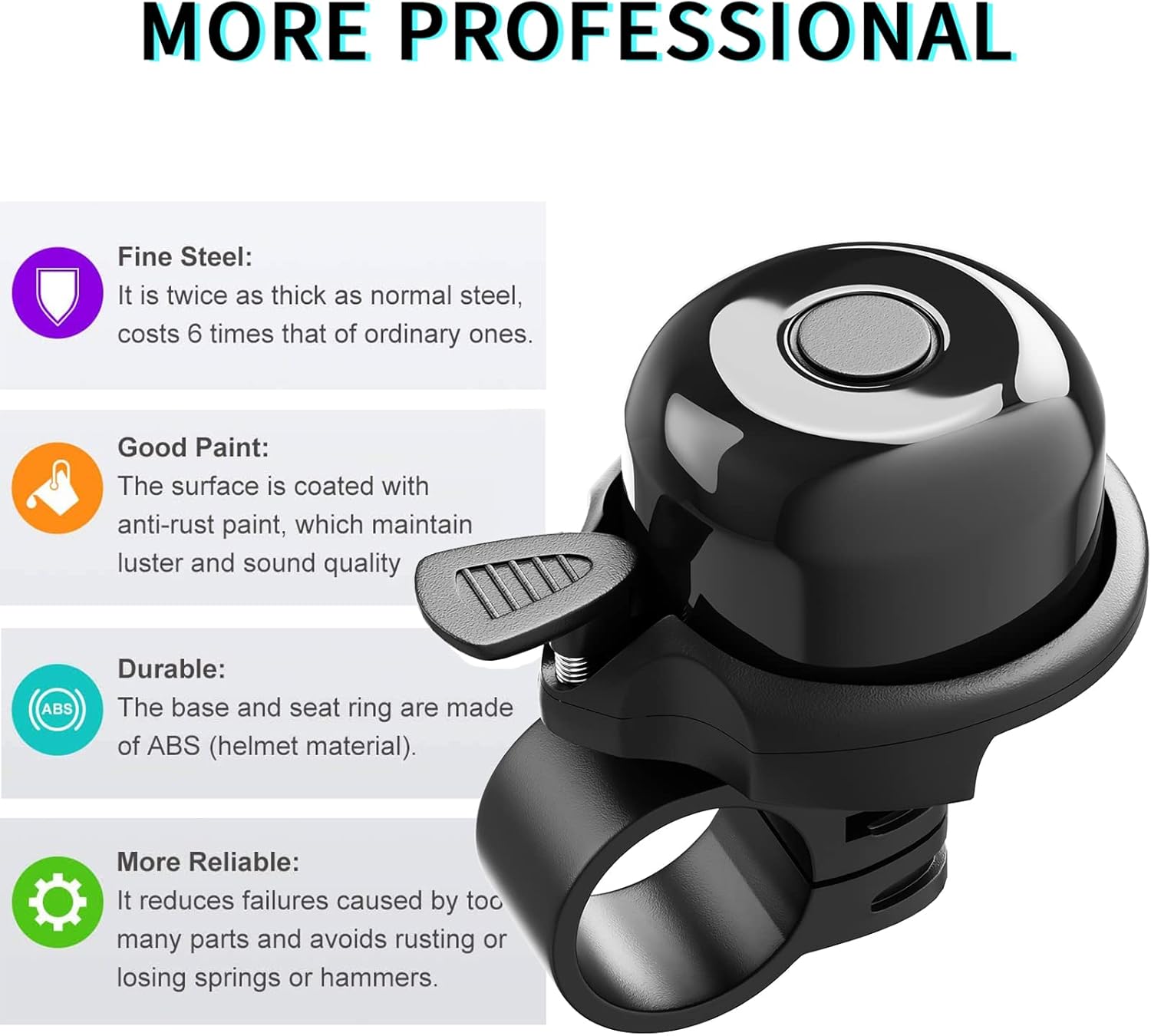 - EXCELLENT& DURABLE MATERIAL: The bicycle bell is made of premium quality industrial grade iron and engineering plastic material that is anti-rust and durable to last for a very long time it offers men and women riders a prolong usage. The hammer attached to the bell is an integrated PP material that has be connected together and will not fall out easily.