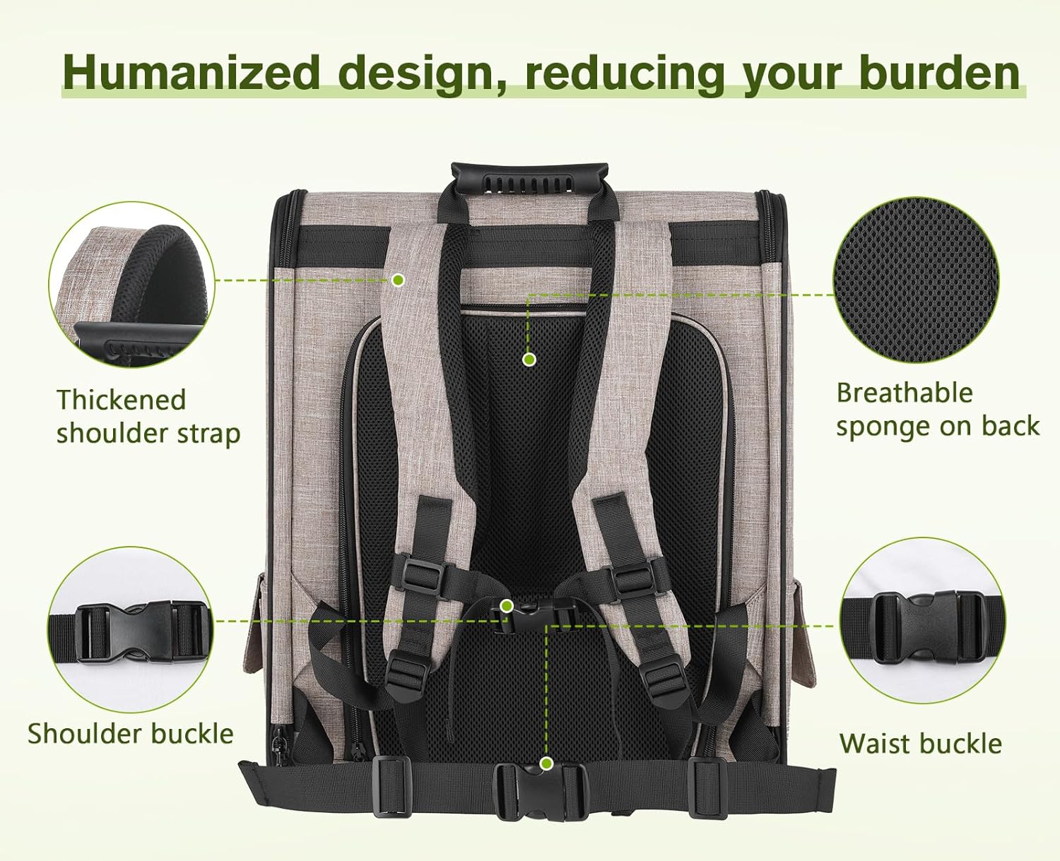 - 【 ERGONOMIC DESIGN 】: The widened & padded shoulder straps and back provide support and help reduce load and increase comfort. 2 retractable buckles on the top and bottom of the cat backpack to prevent shoulder strap deviation and maintain the stability of the dog carrier.