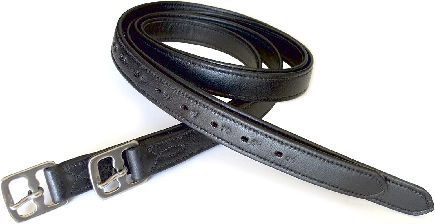 48" / 50" / 54" / 60" New 1" Super Soft English Stirrup Leathers Black/Havana (Black, 48")