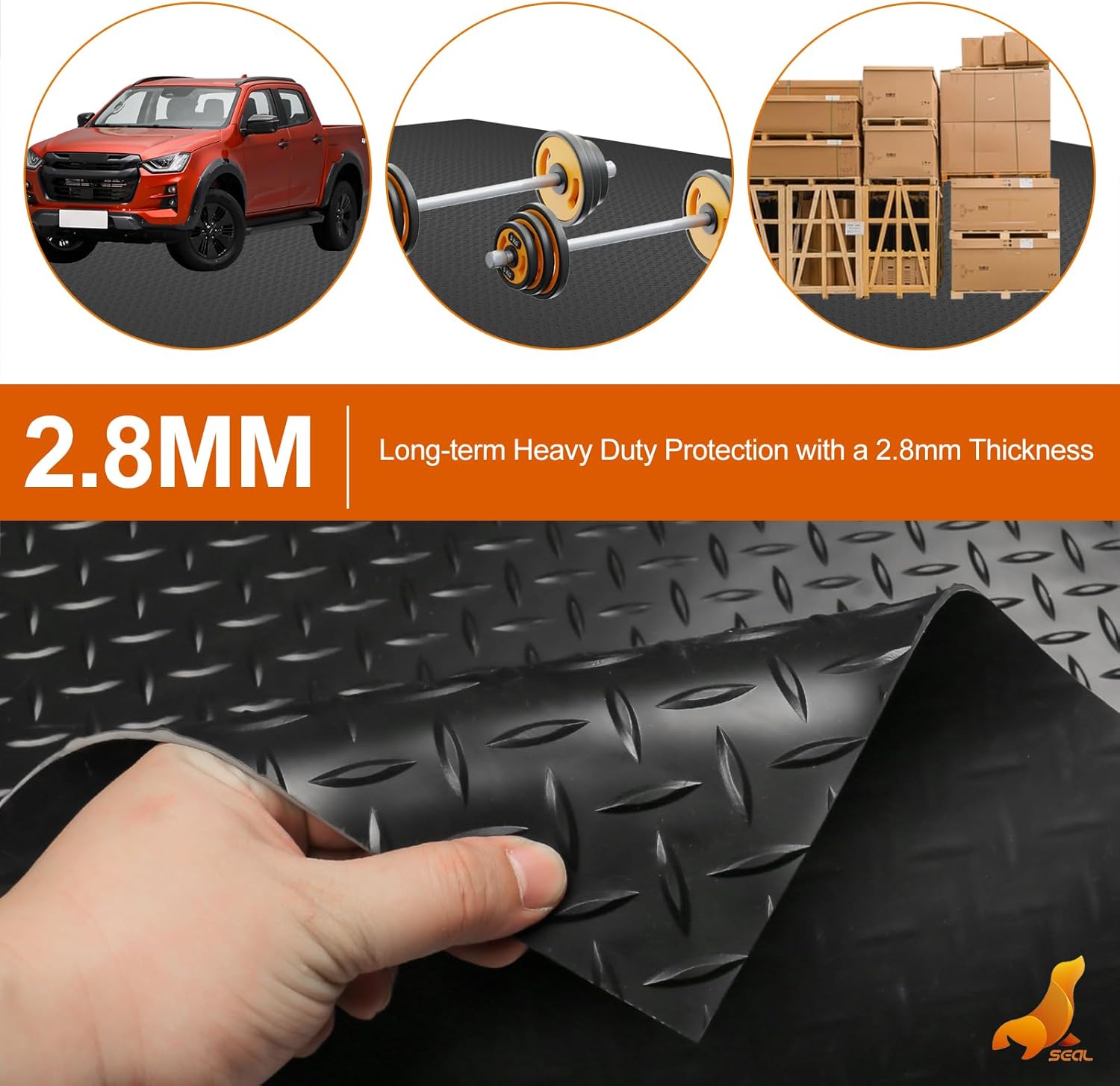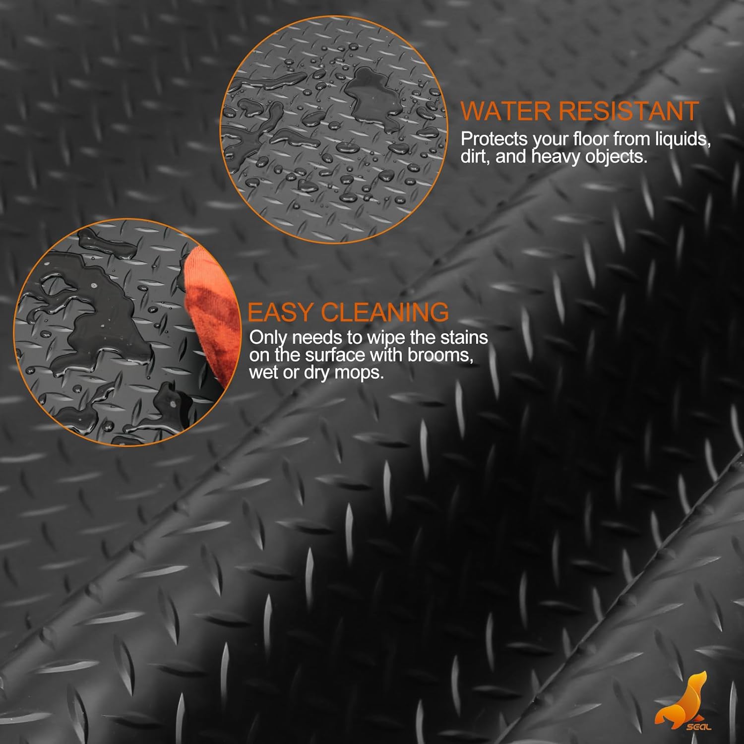 - [Protect Your Floors Like Never Before] - Keep your garage floor looking new with SEALâs mats. Their special diamond plate design makes sure you wonât slip, giving you a safe way to walk in and out. These mats stop all kinds of damage like scratches and spills from ruining your floors, offering full coverage.