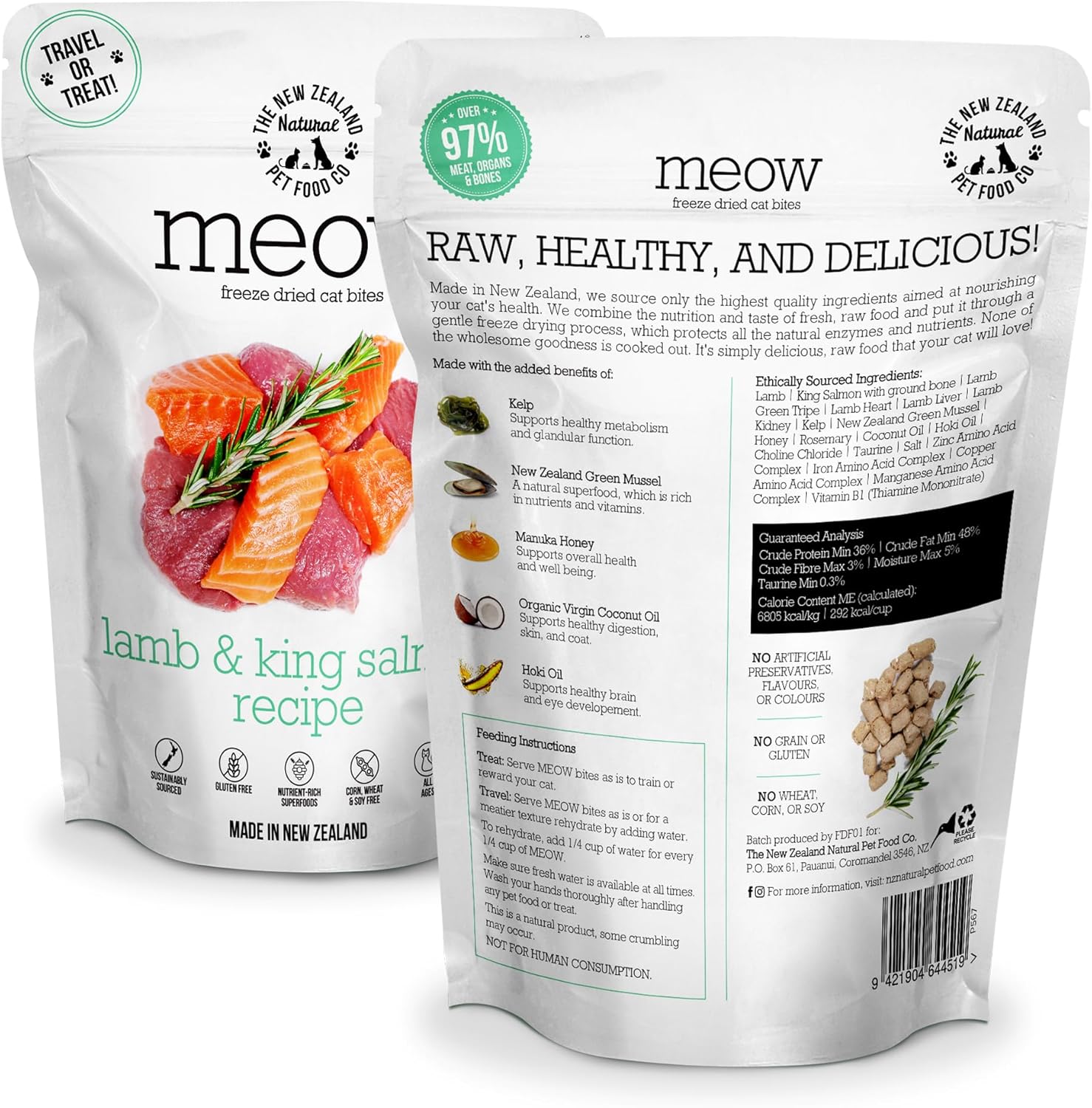 - Ethical & Sustainable - Made in small batches in New Zealand & using premium Lamb meat & organs combined with King Salmon with ground bones & other natural, nutritious ingredients.