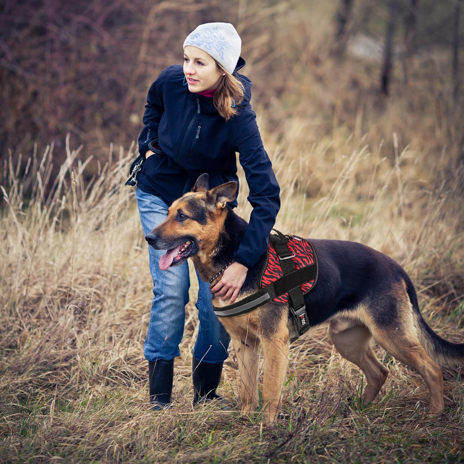 Dogline Dog Harness, Reflective No-Pull Adjustable Vest with Handle for Walking, Training, Breathable, No - Choke Harness for Small, Medium or Large Dogs Room for Patches Zebra Black/Red XS 15"-18"