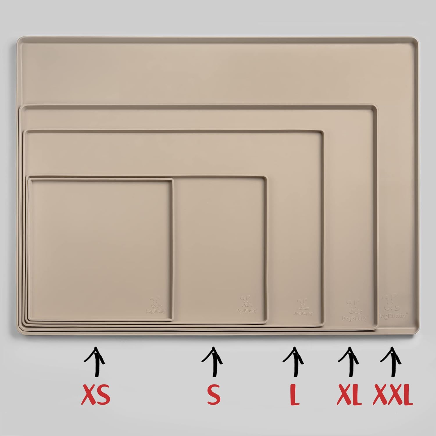 DogBuddy Non-Slip Silicone Food Mat for Dogs (XXL: 32" x 24", Taupe) - Waterproof, Nonslip Dog Feeding Mat with Raised Edges