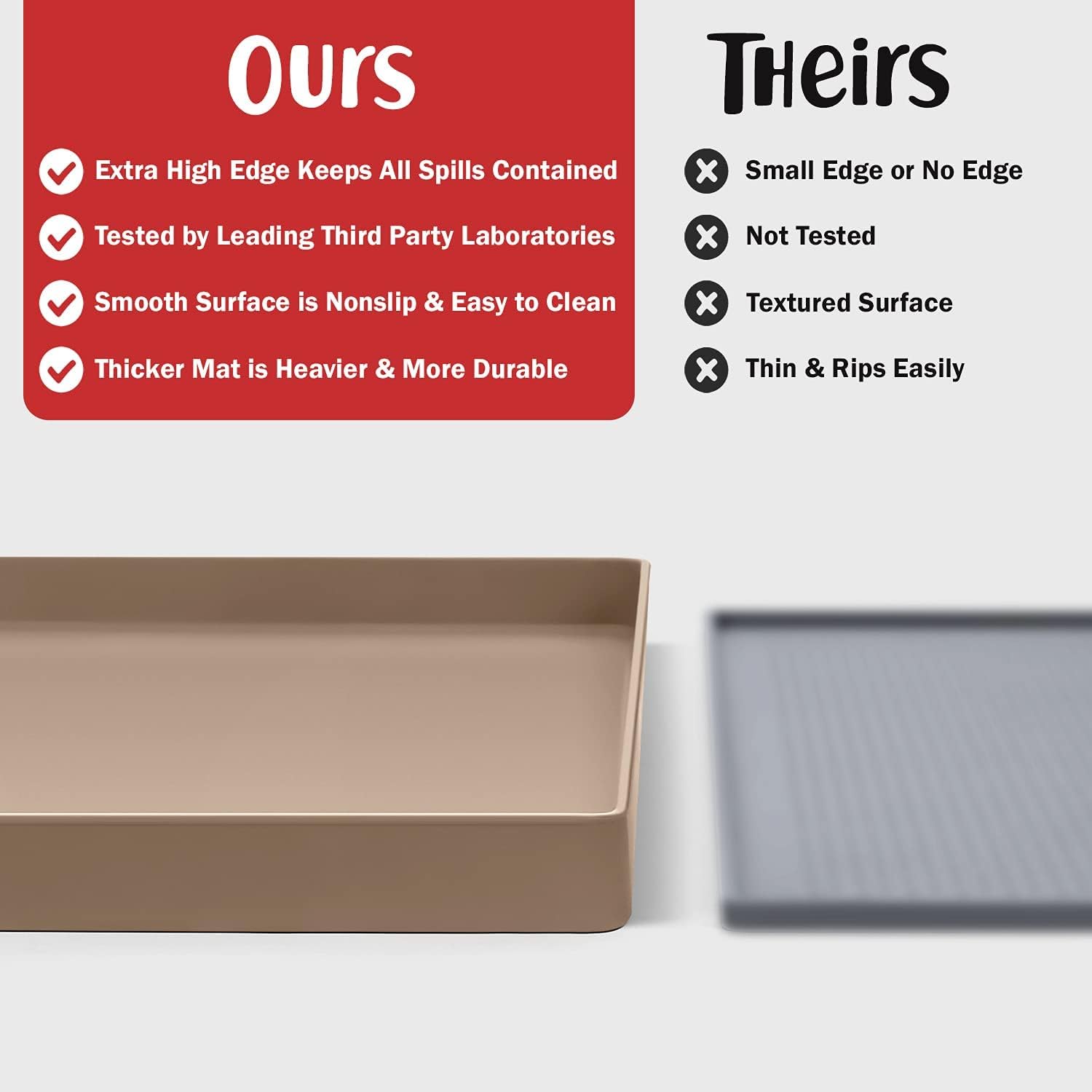 - Less Mess & Less Stress: Super high edge (0.6β) of DogBuddy Dog Food Mat keeps the spilled food and water on the mat and away from your beautiful floor. Silicone is naturally 100% waterproof, so what happens on the mat stays on the mat.