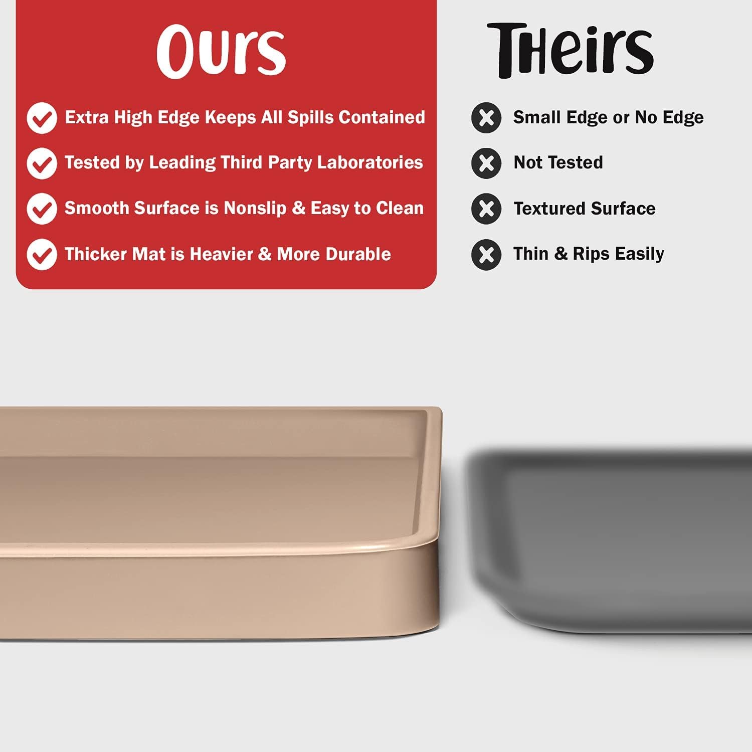 - Less Mess & Less Stress: Super high edge (0.6”) of DogBuddy Dog Food Mat keeps the spilled food and water on the mat and away from your beautiful floor. Silicone is naturally 100% waterproof, so what happens on the mat stays on the mat.