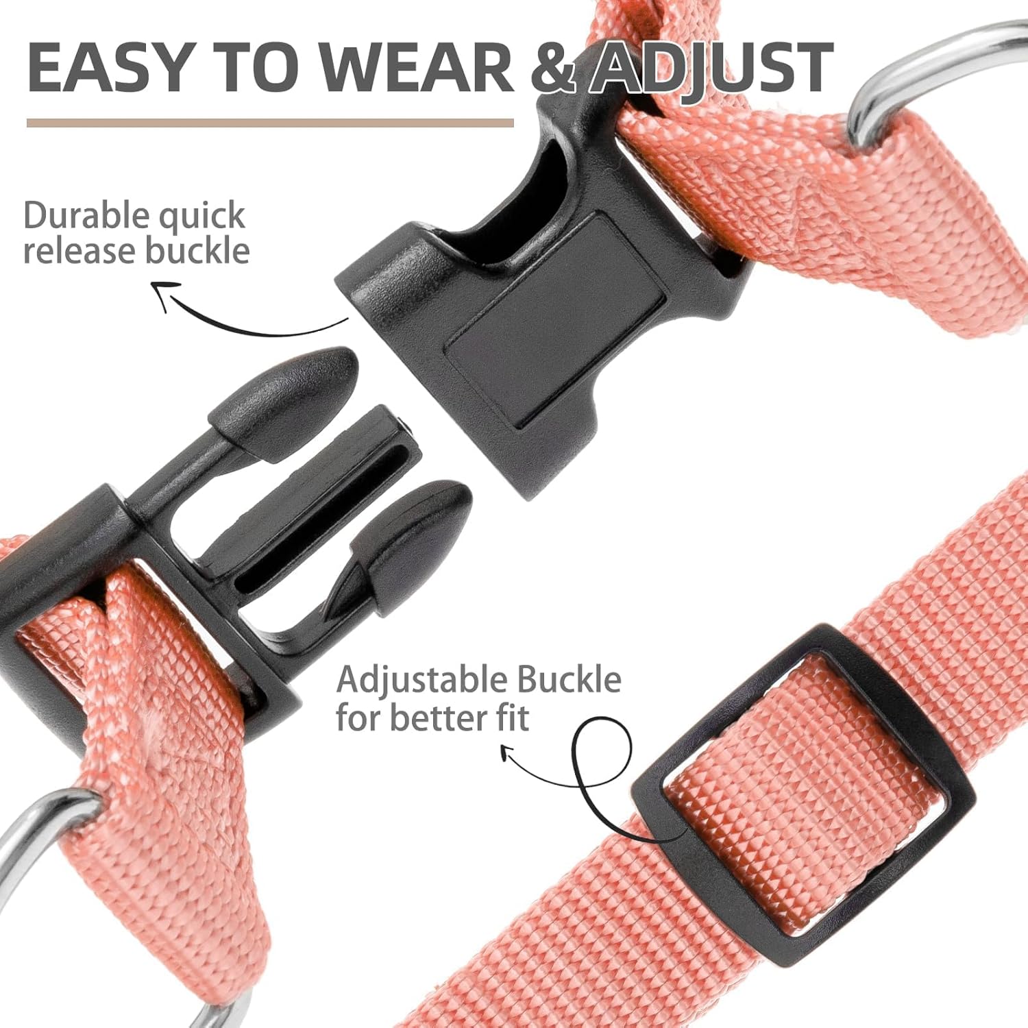 PUPTECK No Pull Dog Harness Soft Adjustable Basic Nylon Step in Puppy Vest Outdoor Walking with ID Tag LightCoral