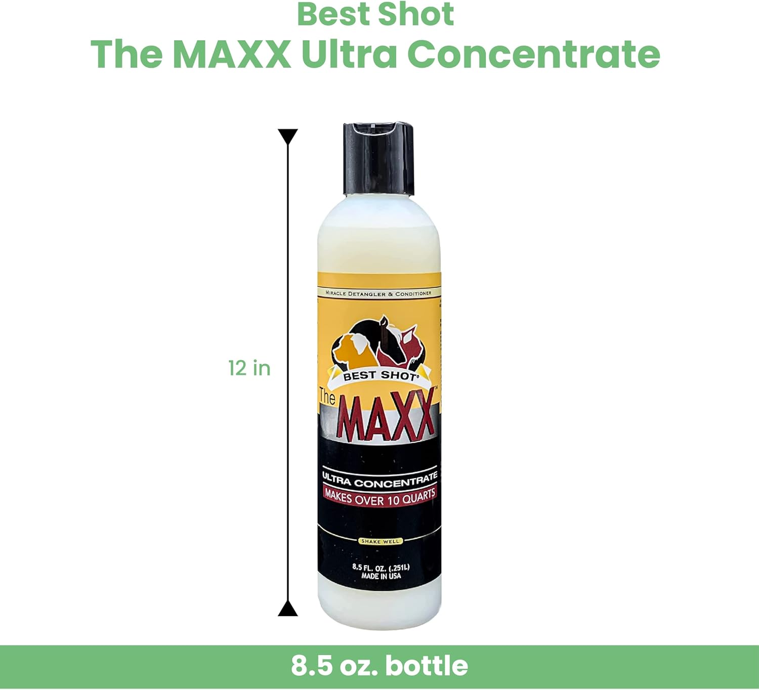 - Miracle Detangler: The MAXX Ultra Concentrate by Best Shot is a miracle detangler and conditioner for your pets. Spray the detangler on areas of concern and blend with your fingers into the mats. Once dried, gently brush and easily detangle