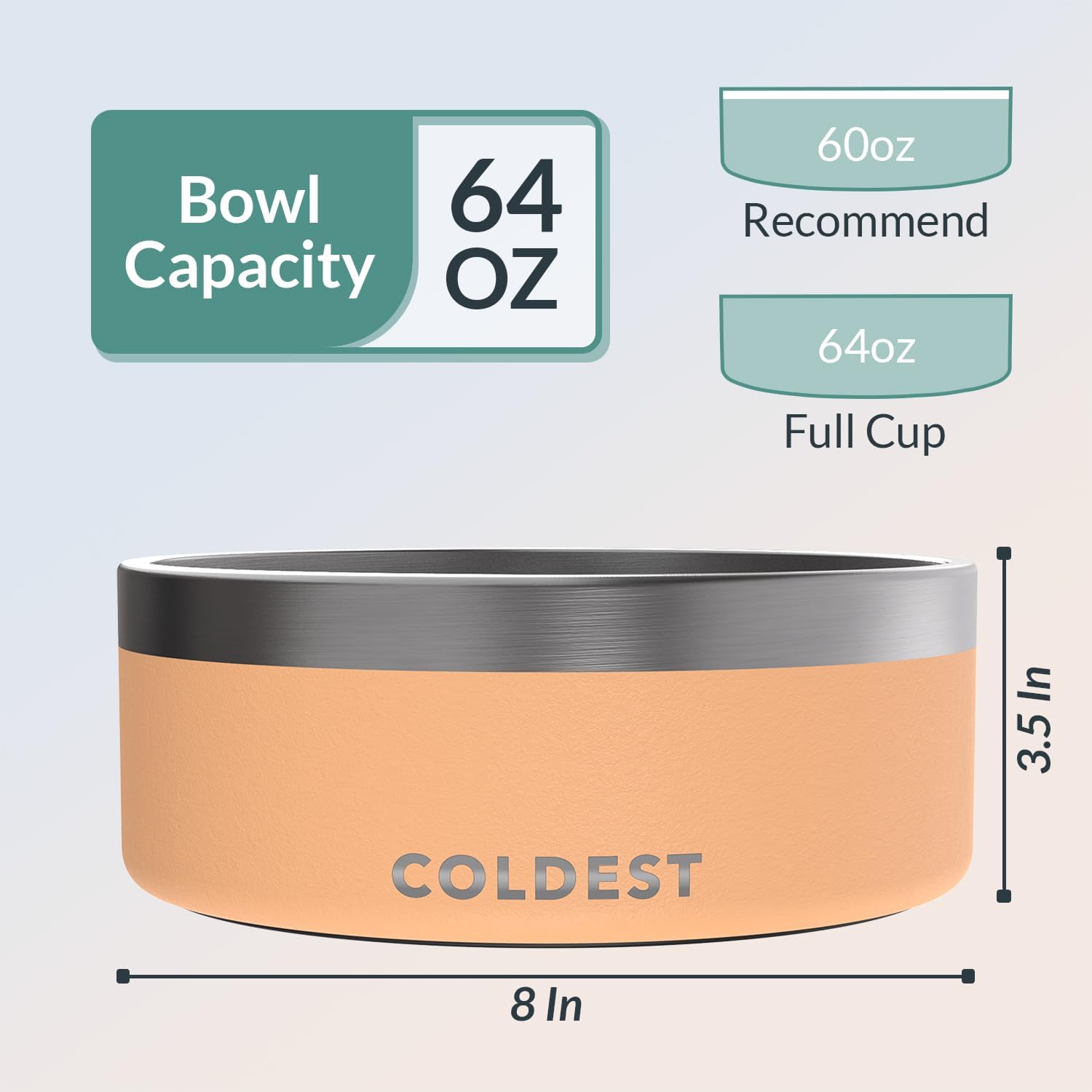 Coldest Dog Bowl - Anti Rust Metal, Non Slip, 3 Layers Insulated Stainless Steel Dog Bowls - Spill Proof & Heavy Duty - Water Bowl for Dogs, Cats & Pets, Dish Washer Safe (64 oz, Sahara Peach)
