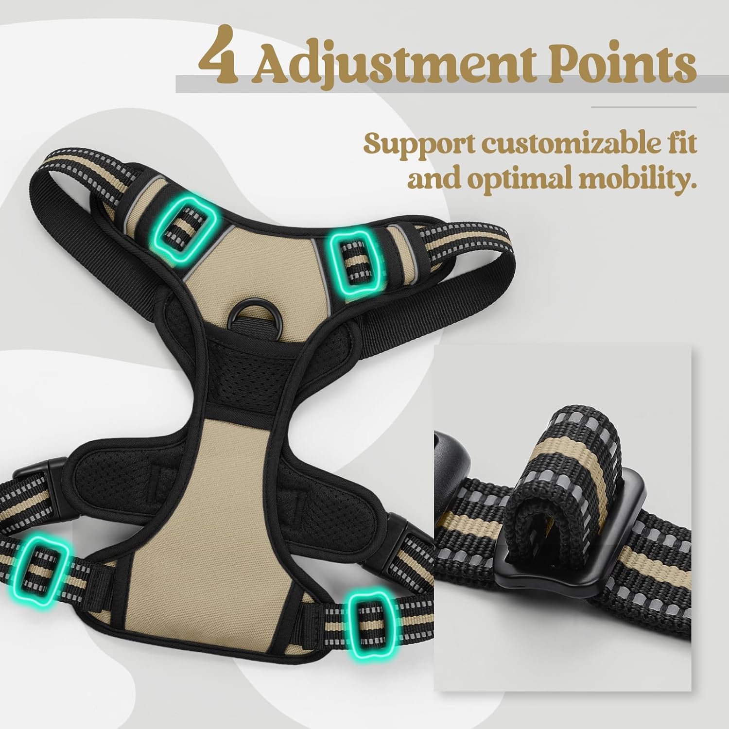rabbitgoo Dog Harness No Pull with 2 Leash Clips, Adjustable Soft Padded, Reflective Oxford No Choke Pet Vest with Easy Control Handle for Large Dogs, Beige, L