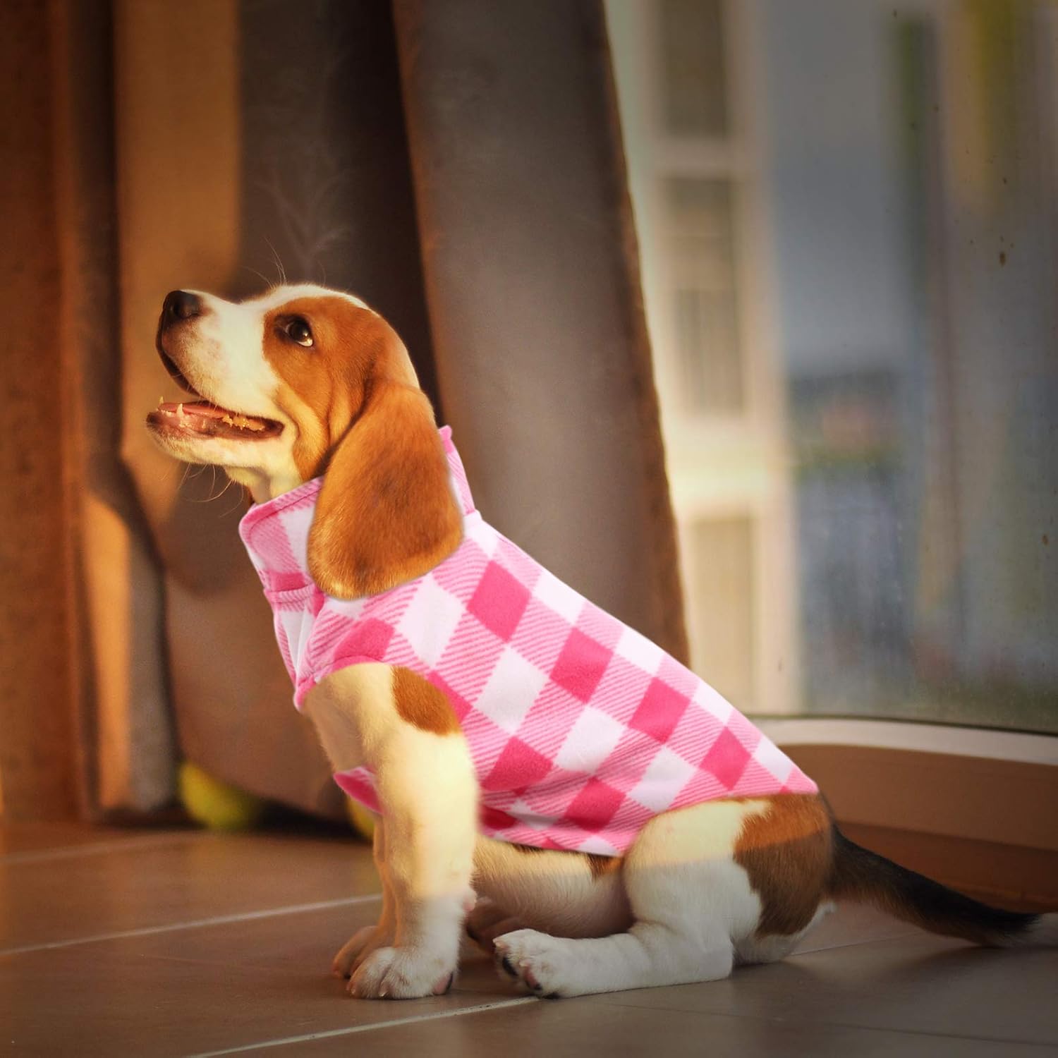 ASENKU Dog Sweater, Plaid Dogs Fleece Vest, Soft Comfortable Pet Pajamas, Warm Winter Puppy Shirt, Cold Weather Coat Jacket Pet Clothes for Small & Medium Dog Breeds