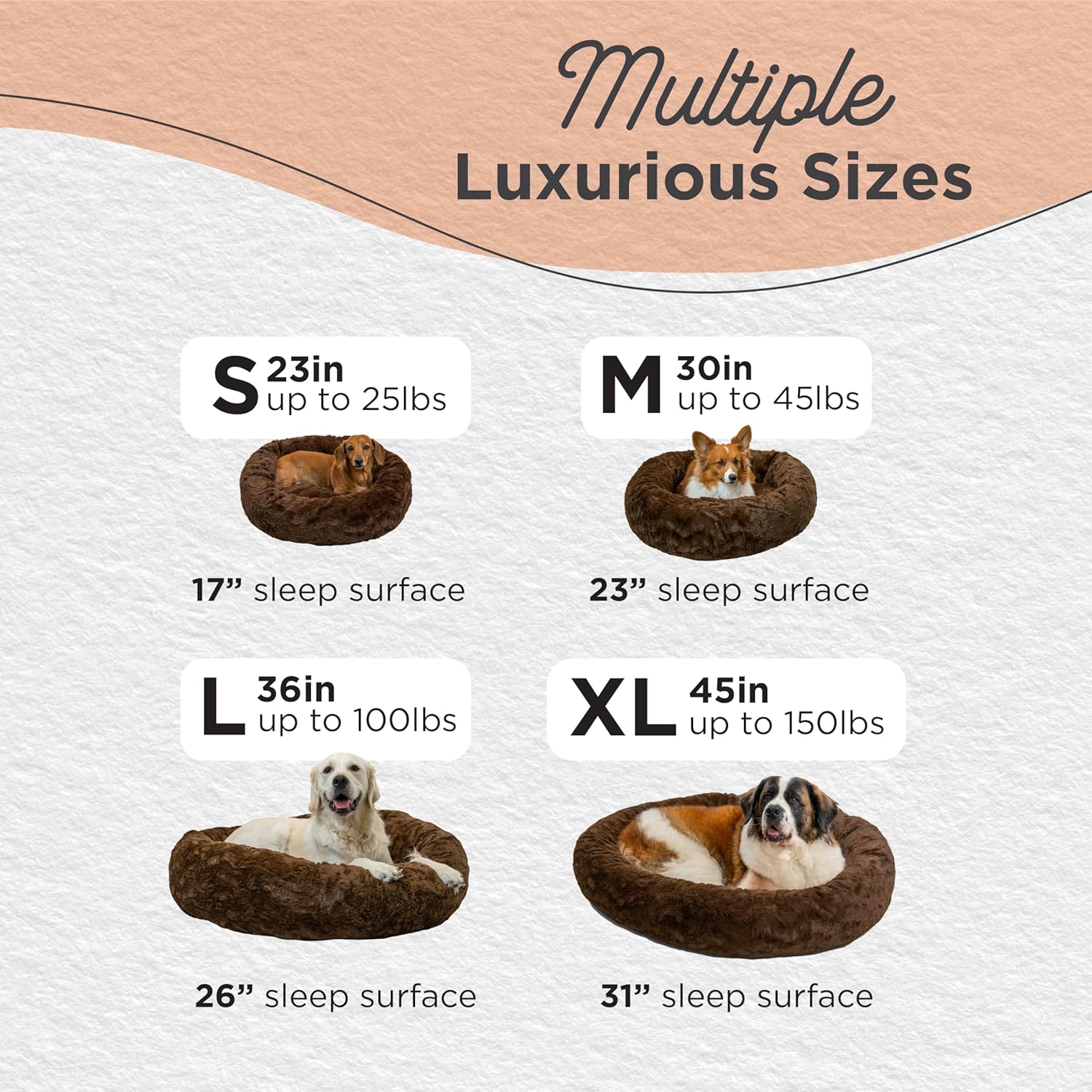 Best Friends by Sheri Original Calming Donut Dog and Cat Bed, Lux Faux Fur, Dark Brown, (36in x 36in) - Anxiety Relief for Pets Up to 100 lbs