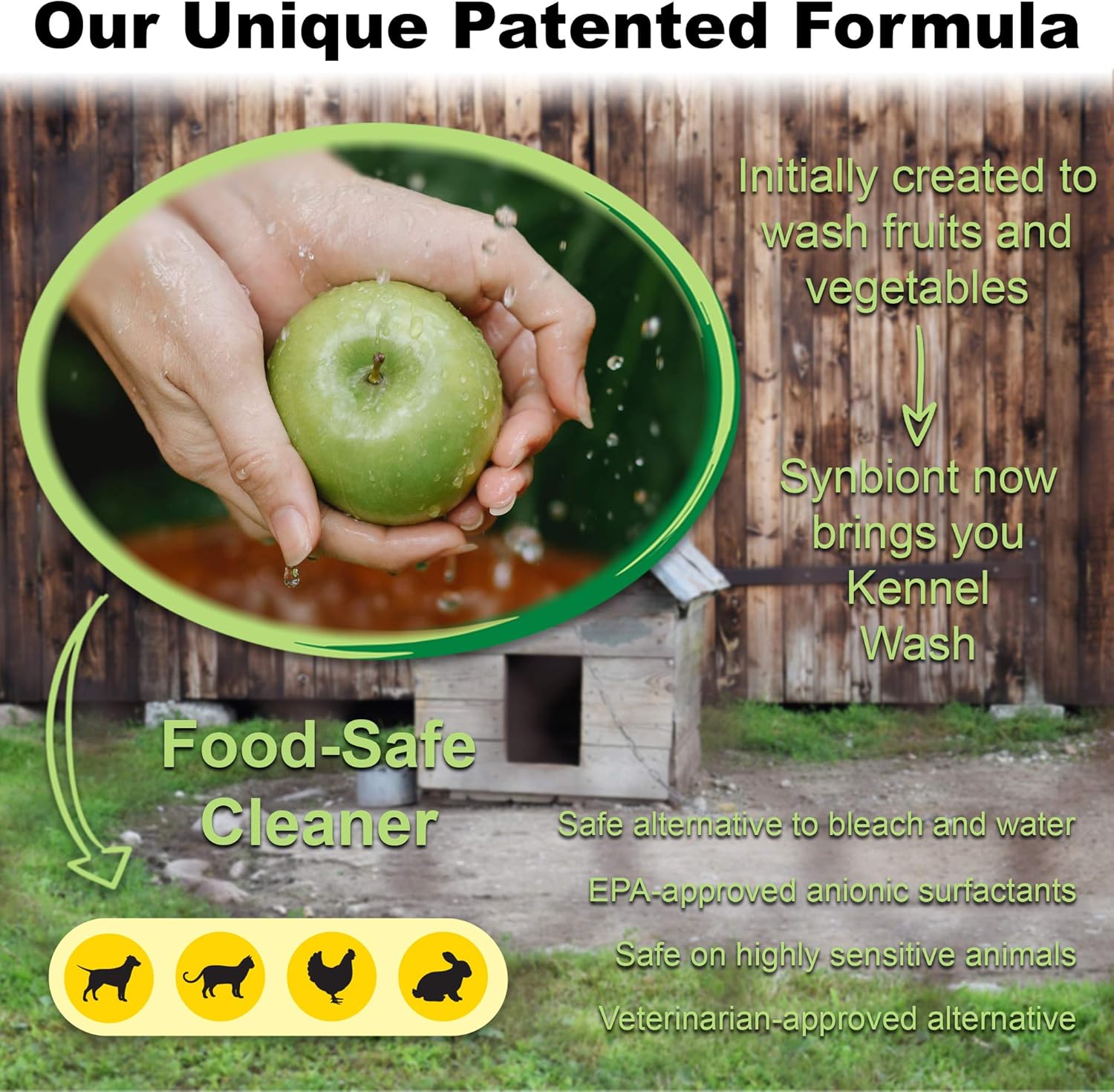 - CLEAN AND PROTECT - Synbiont Kennel Wash helps to wash dirty and soiled areas, as well as harmful substances that can be easily transferred from the dog park, footpaths, shows and trials to your animal, toys and their surroundings.