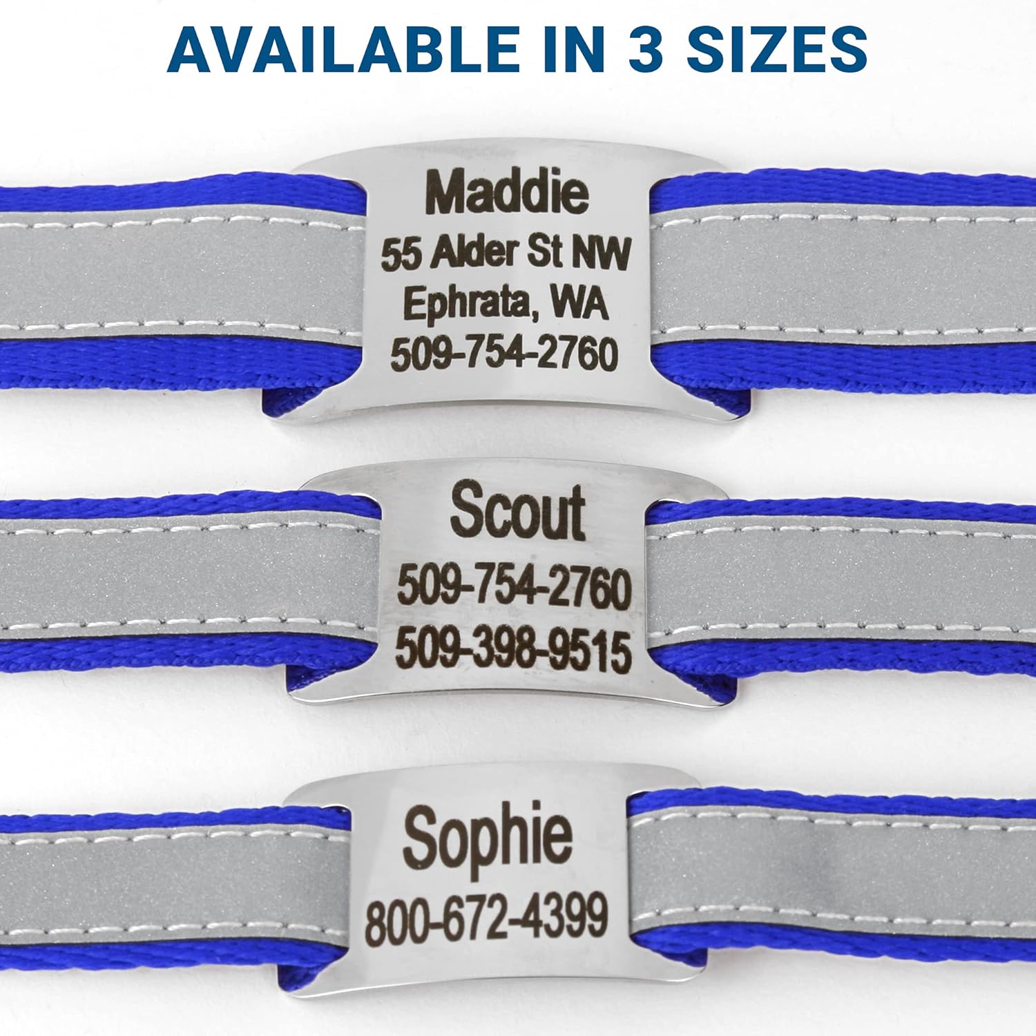 GoTags Reflective Personalized Dog Collar with Nameplate, Adjustable Dog Collar with Custom Engraved Steel Slide On Pet ID Tag, Silent, No Noise Dog Tag for Large Medium or Small (Blue, Medium)