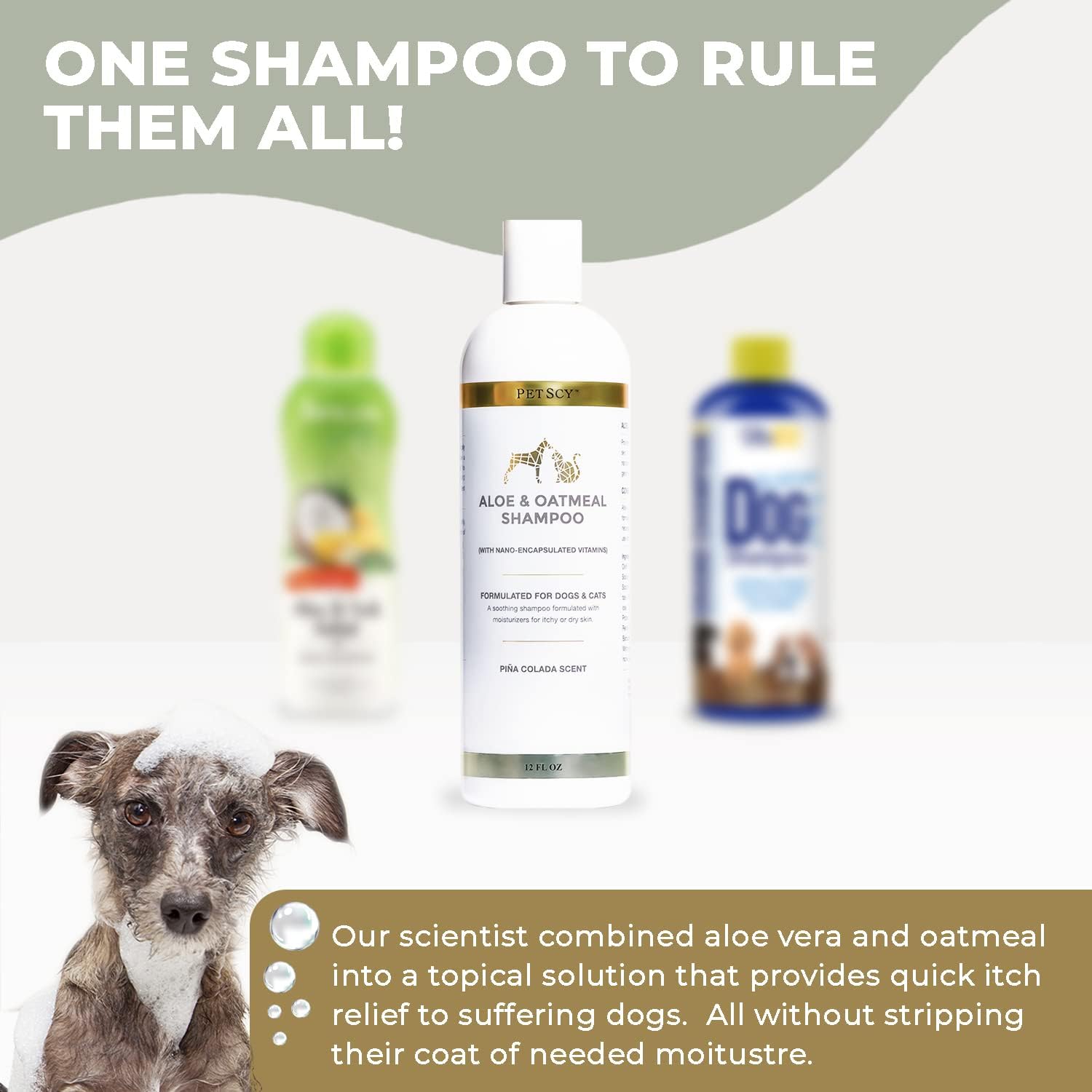PetScy - Aloe & Oatmeal Shampoo for Dogs and Cats, Moisturizing Pet Shampoo for Skin Relief, All-Natural, Soap-Free & Gentle, Pina Colada Scent, 12 Oz