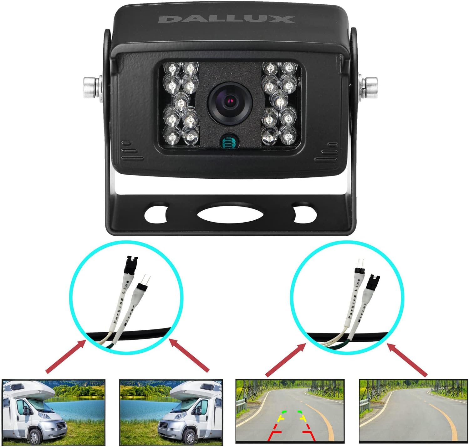 Truck Backup Camera with Parking Line Switch ON/Off for Bus/Travel Trailer/Van/Fifth Wheel/RV Camper