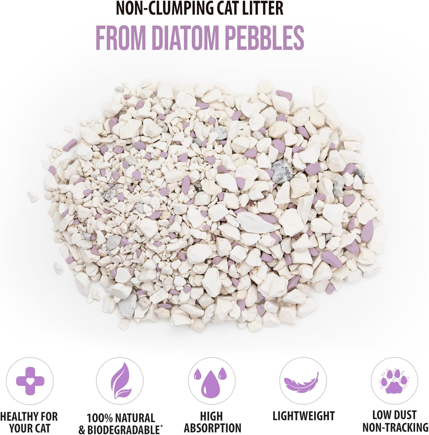 Skoon All Natural Cat Litter (2 Bags) - Lavender - Lightweight, Low Tracking, Non-Clumping Diatom Pebbles Absorb, Lock, and Seal Waste for Best Odor Control