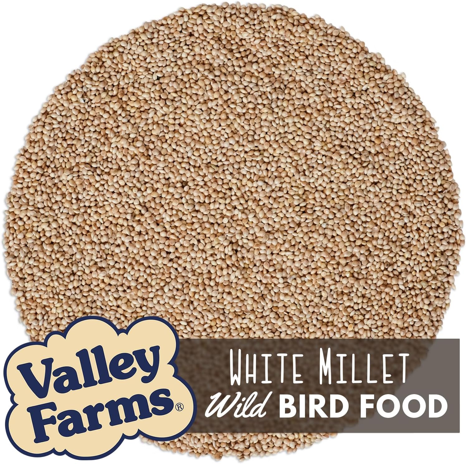 Valley Farms White Millet Wild Bird Seed (5LB) for Outside feeders, White proso Millet, Bird Watcher Secret Wild Bird Food to Attract Colorful Painted Buntings in Southern USA