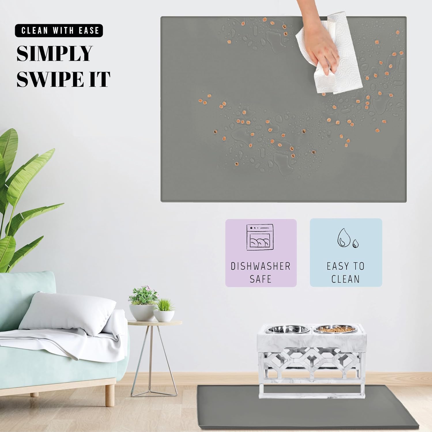 - Hassle-Free Cleanup: Want to reduce cleaning time? Our high durability dog food mat large for saves you the hassle. Just wipe it with a paper towel every 3-5 days, and say goodbye to daily cleanup chores