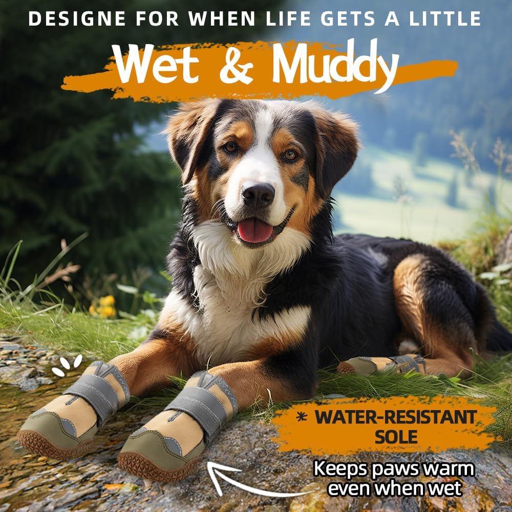- Adjustable Dog Hiking Boots : Easy to put on / off, Jzxoiva dog shoes are fastened firmly by reflective straps, which enhance visibility all the night making your love dog safe